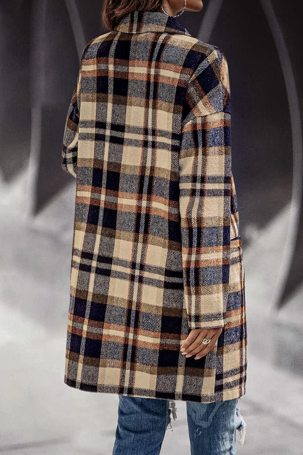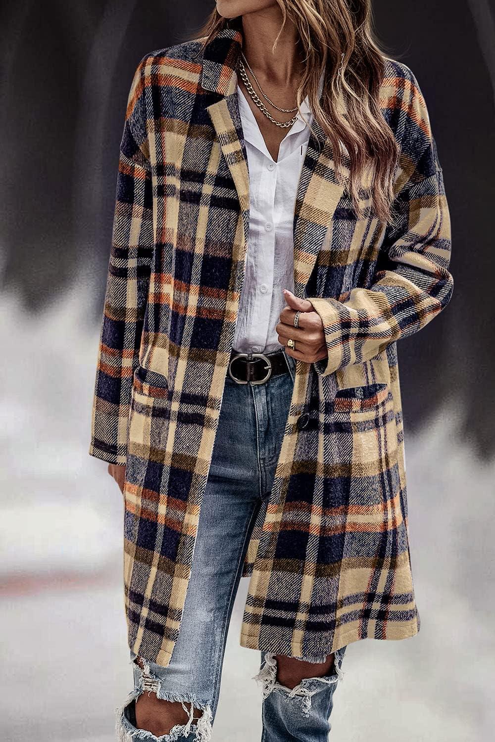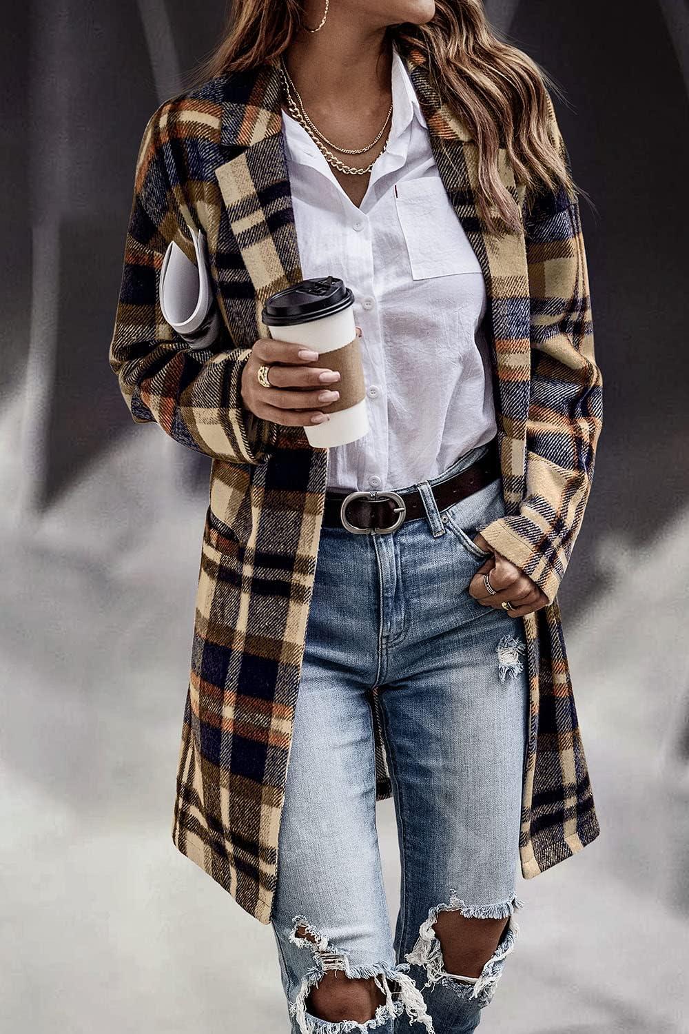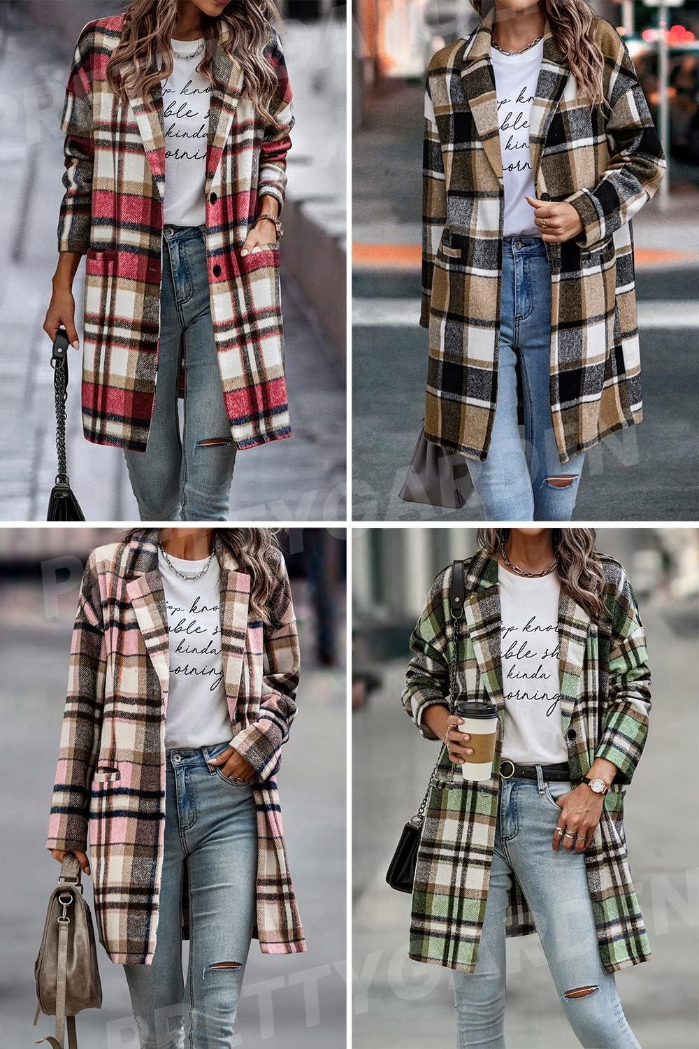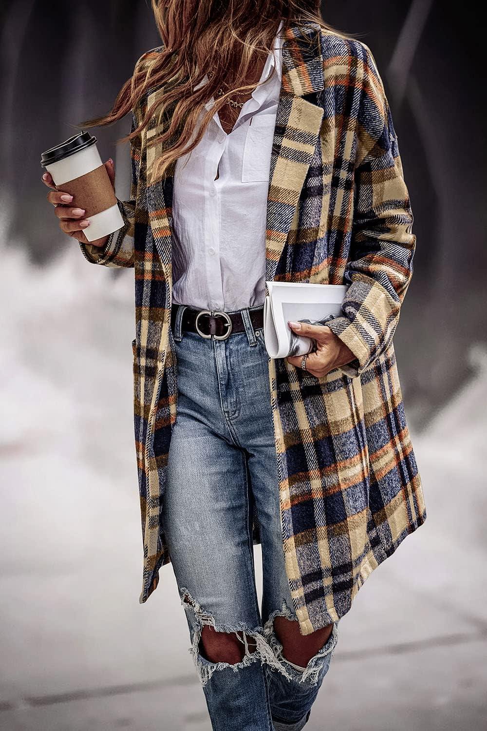 PRETTYGARDEN Women Plaid Shacket Jacket Trendy Fall Casual Button Wool Blend Tartan Trench Coat Winter Clothing with Pockets(Khaki)