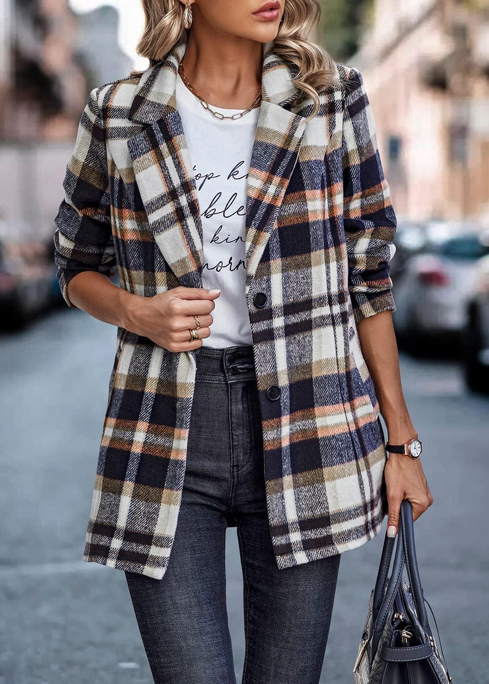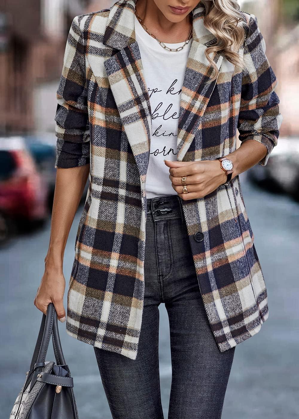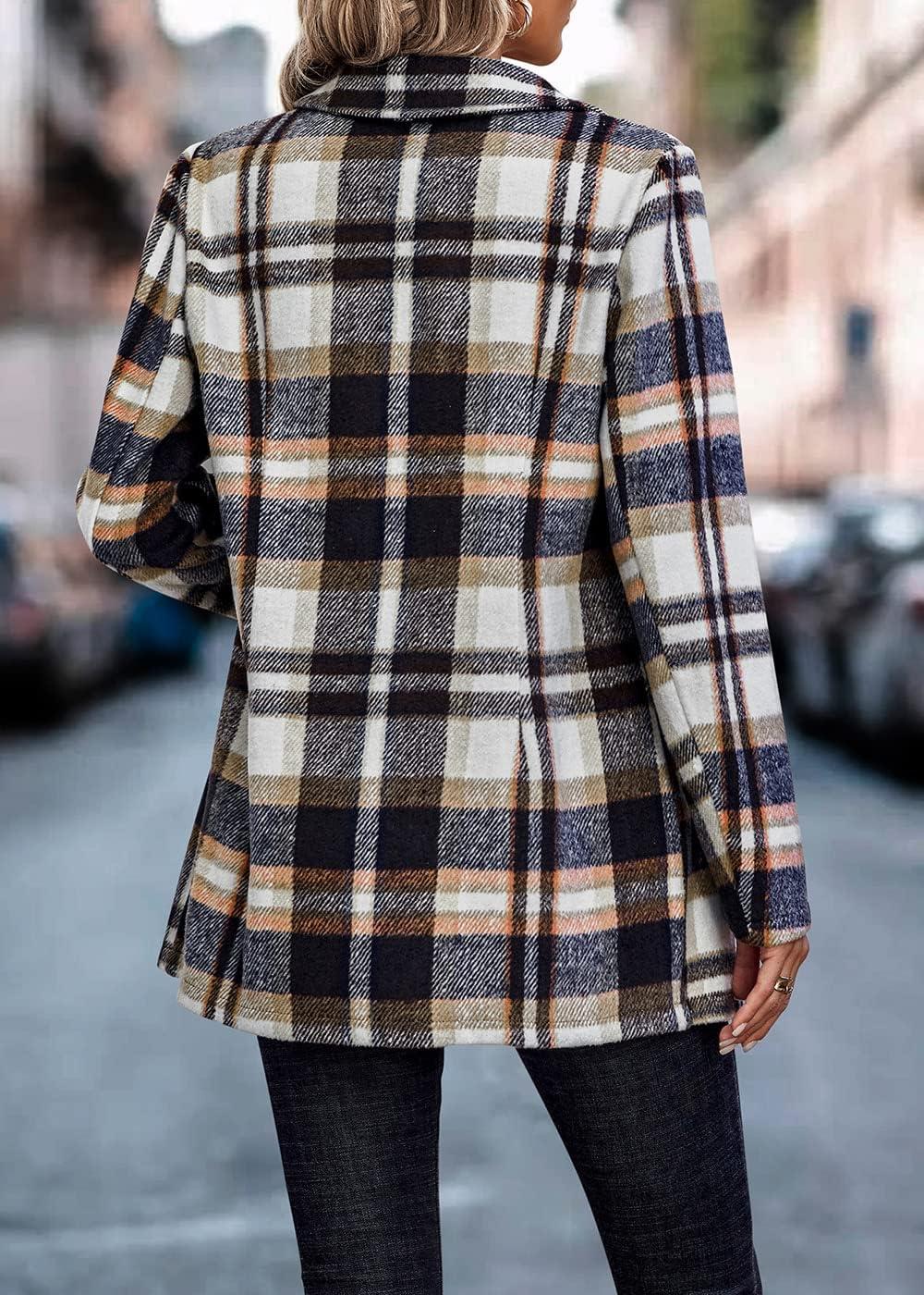 PRETTYGARDEN Women Plaid Shacket Jacket Trendy Fall Casual Button Wool Blend Tartan Trench Coat Winter Clothing with Pockets(Short Style Brown)