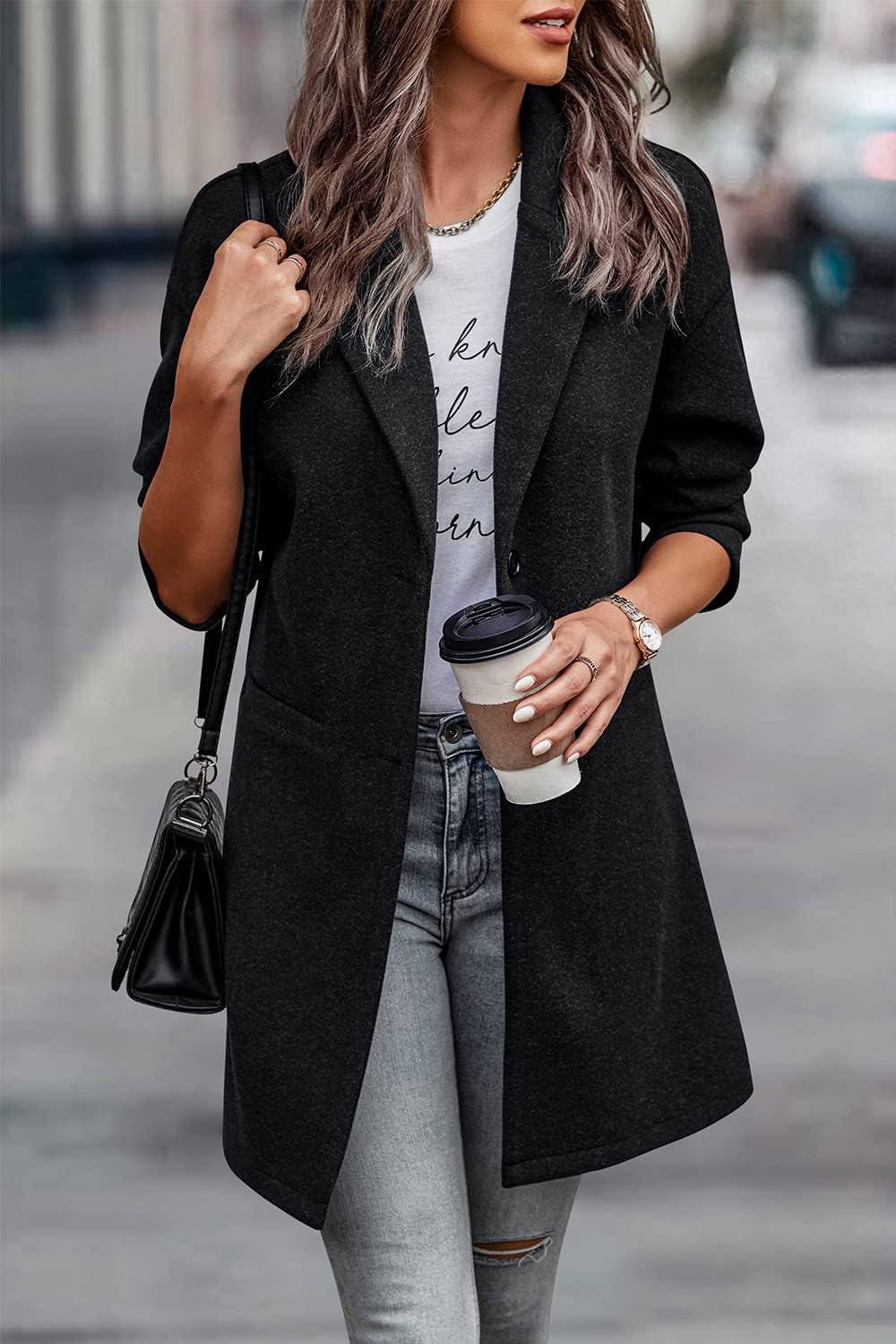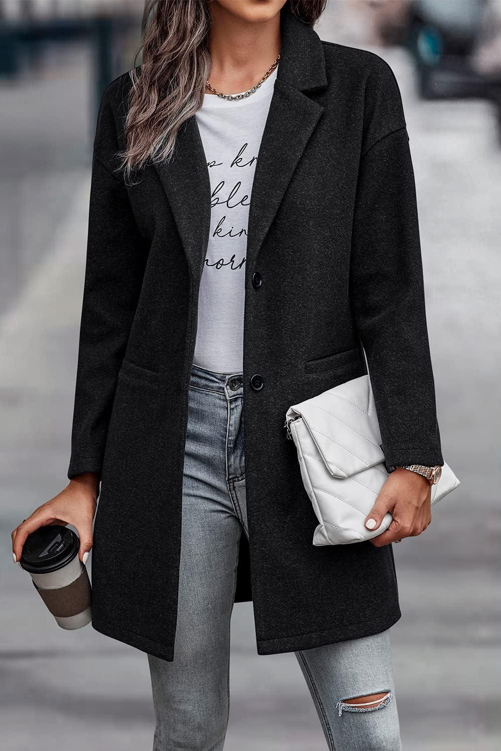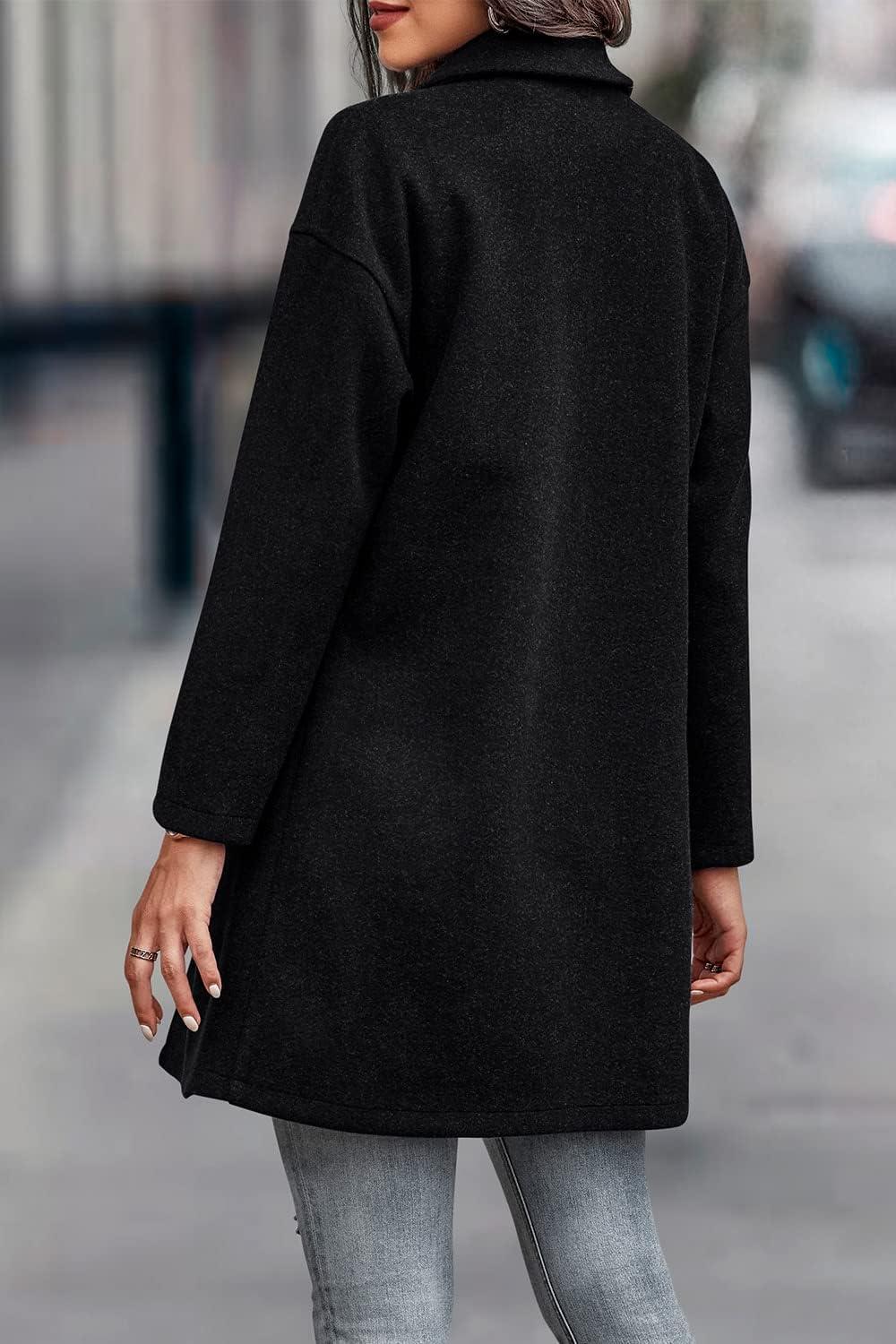 PRETTYGARDEN Women Plaid Shacket Jacket Trendy Fall Casual Button Wool Blend Tartan Trench Coat Winter Clothing with Pockets(Solid Black)