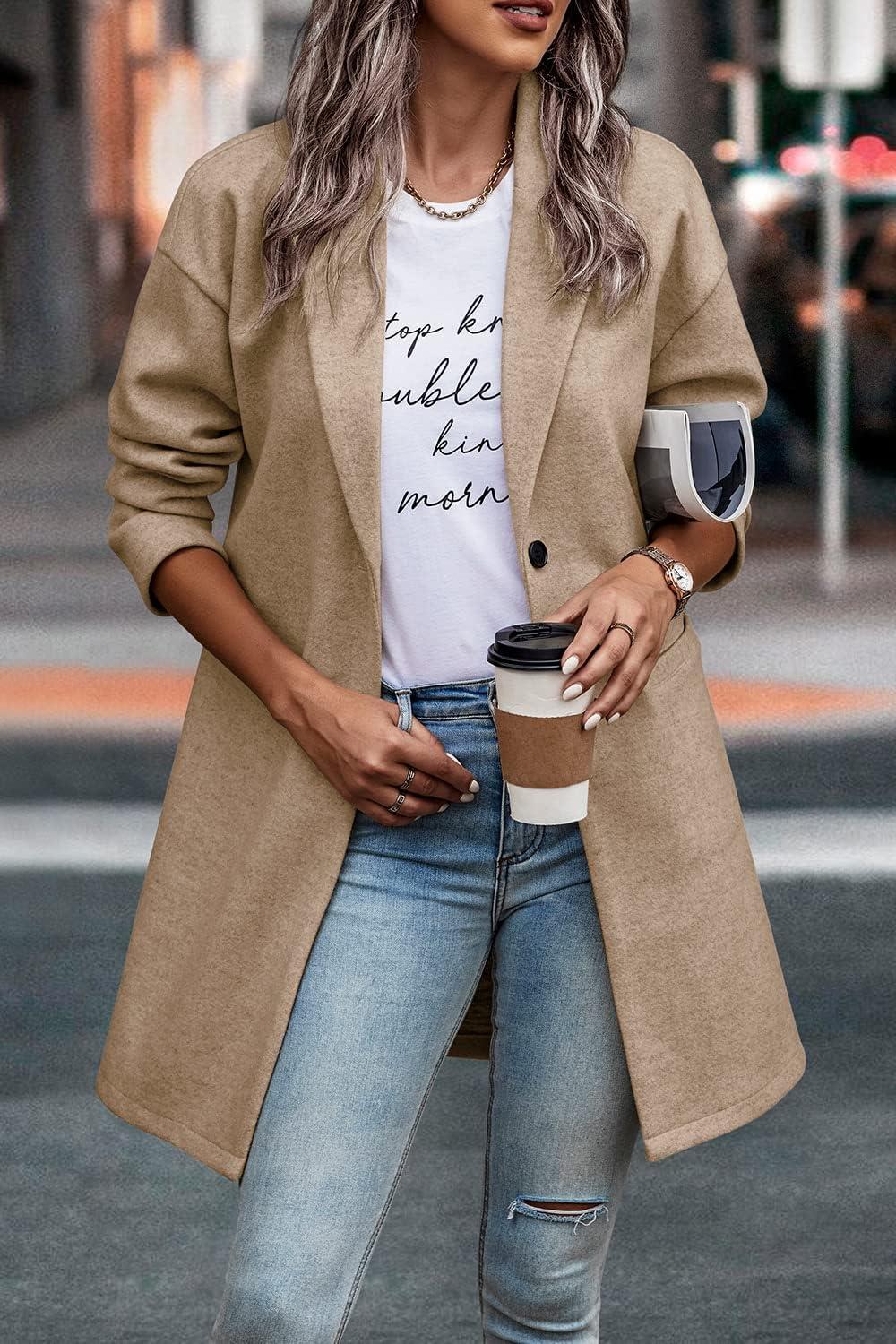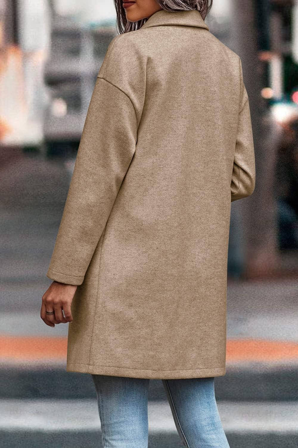 PRETTYGARDEN Women Plaid Shacket Jacket Trendy Fall Casual Button Wool Blend Tartan Trench Coat Winter Clothing with Pockets(Solid Khaki)