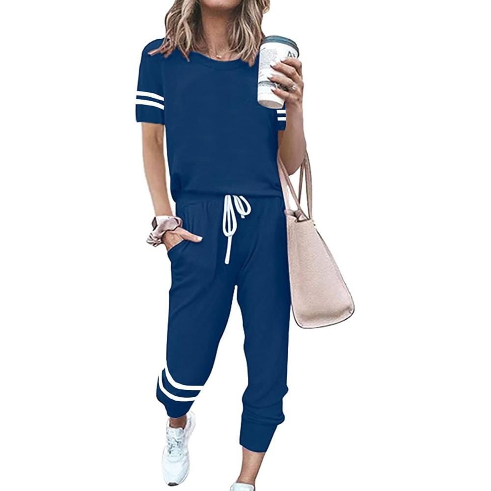Be the first to review “PRETTYGARDEN Women Summer Two Piece Outfits Striped Short Sleeve Pullover and Long Pants Tracksuit Travel Pajama Lounge Set(Dark Blue)”