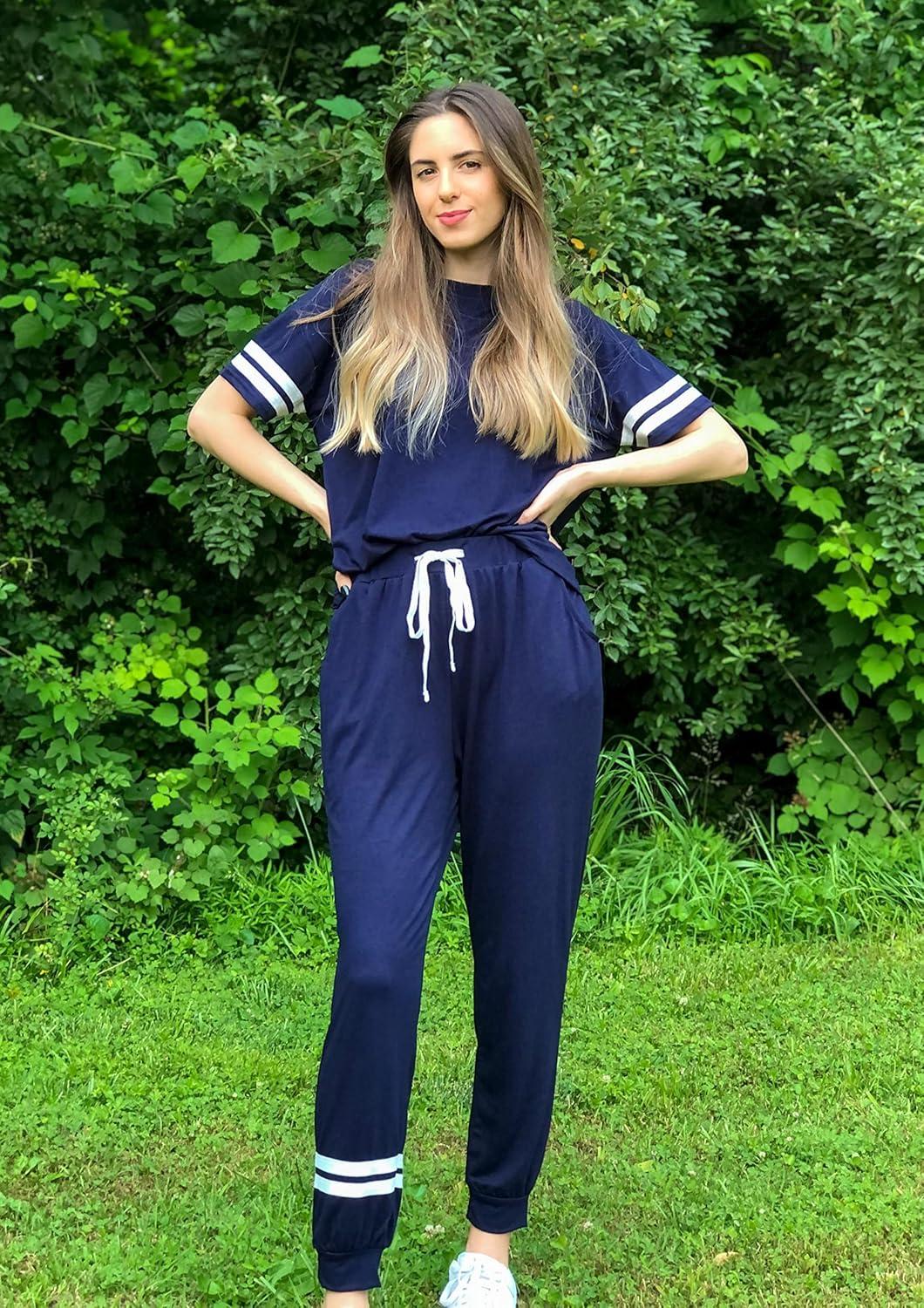 Be the first to review “PRETTYGARDEN Women Summer Two Piece Outfits Striped Short Sleeve Pullover and Long Pants Tracksuit Travel Pajama Lounge Set(Navy)”