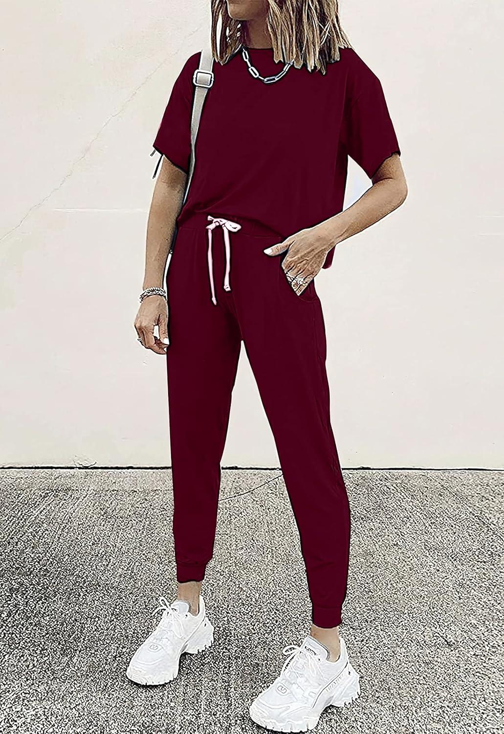 Be the first to review “PRETTYGARDEN Women Summer Two Piece Outfits Striped Short Sleeve Pullover and Long Pants Tracksuit Travel Pajama Lounge Set(Solid Wine Red)”