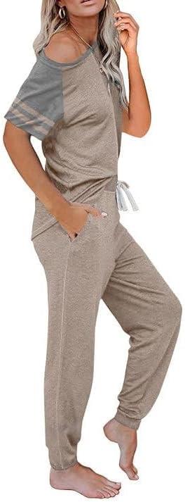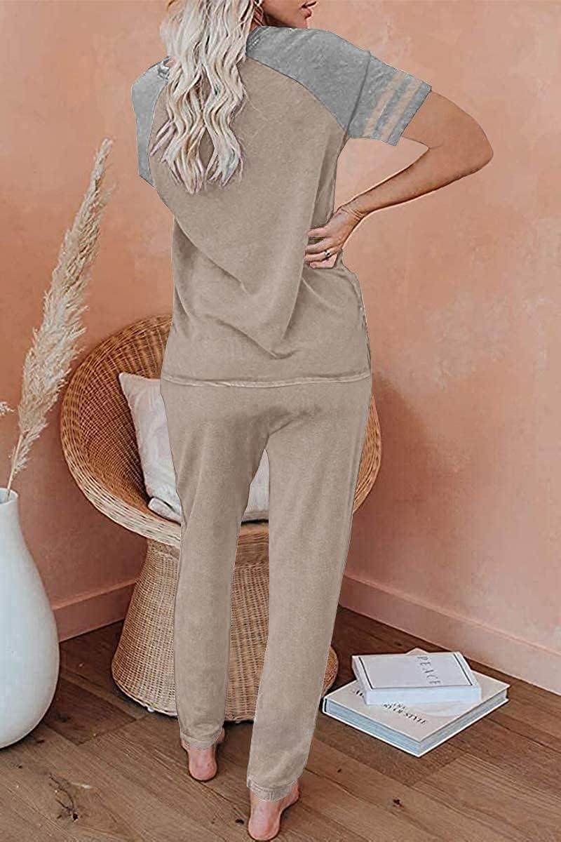PRETTYGARDEN Women Summer Two Piece Outfits Striped Short Sleeve Pullover and Long Pants Tracksuit Travel Pajama Lounge Set(Z-khaki)
