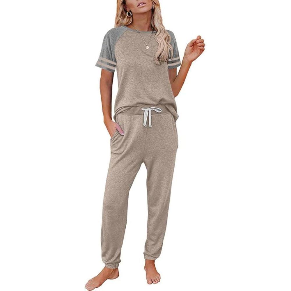 Be the first to review “PRETTYGARDEN Women Summer Two Piece Outfits Striped Short Sleeve Pullover and Long Pants Tracksuit Travel Pajama Lounge Set(Z-khaki)”
