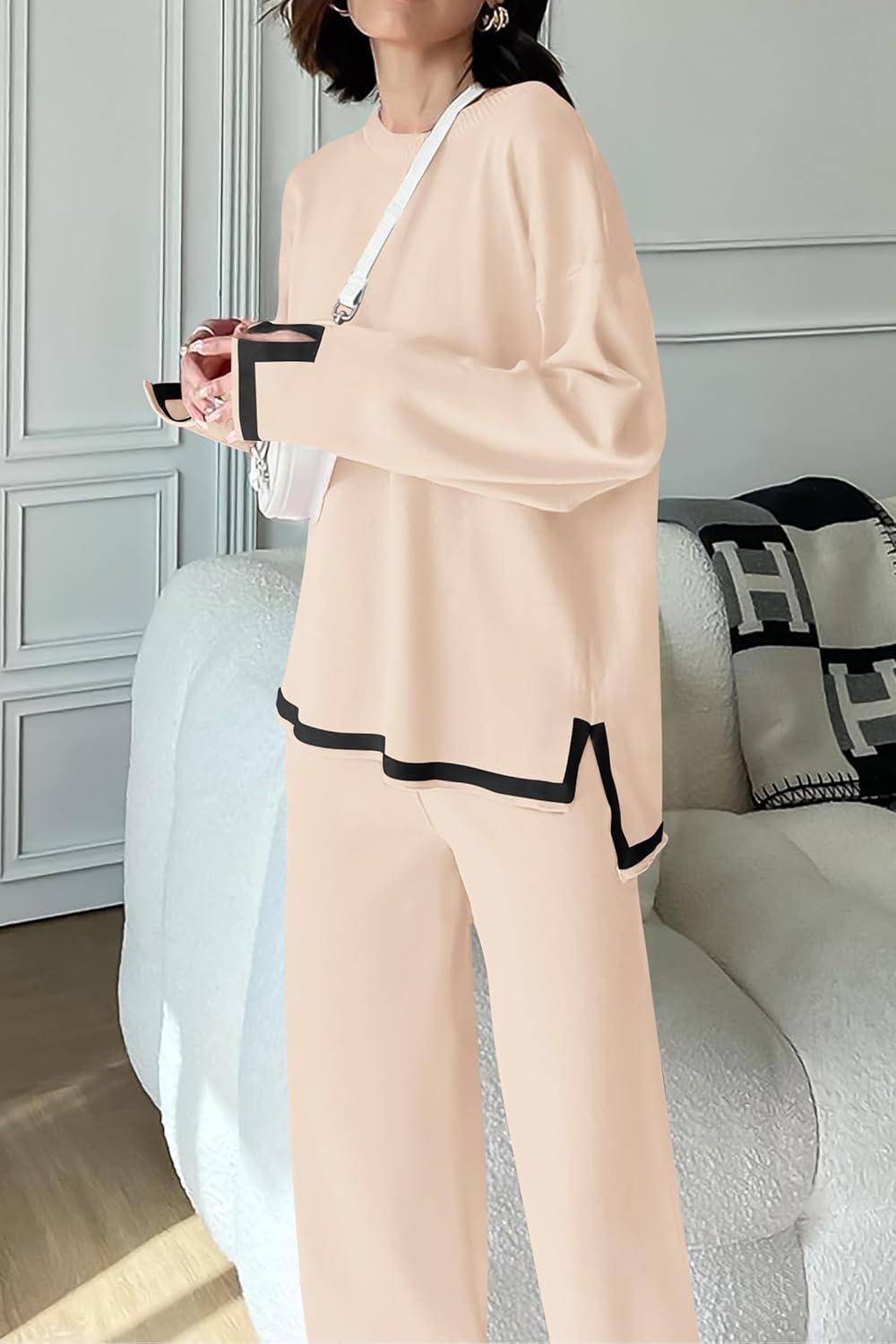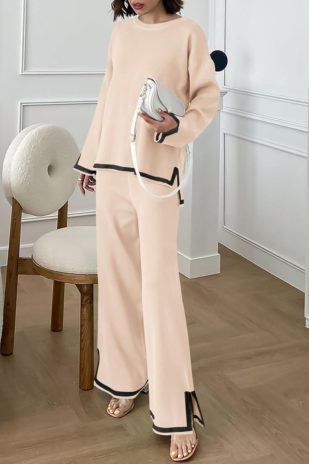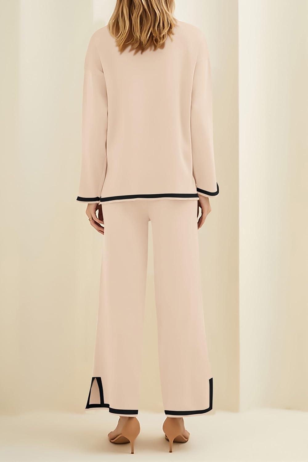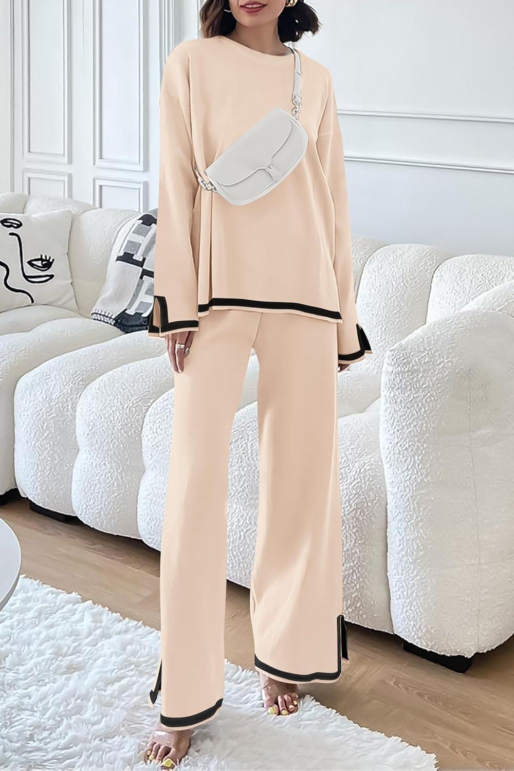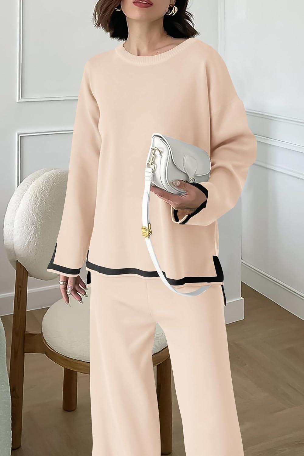 PRETTYGARDEN Women’s 2 Piece Fall Knit Sweater Set Long Sleeve Tops Wide Leg Pants Sweatsuit Tracksuit Outfit Winter Clothing(Beige)