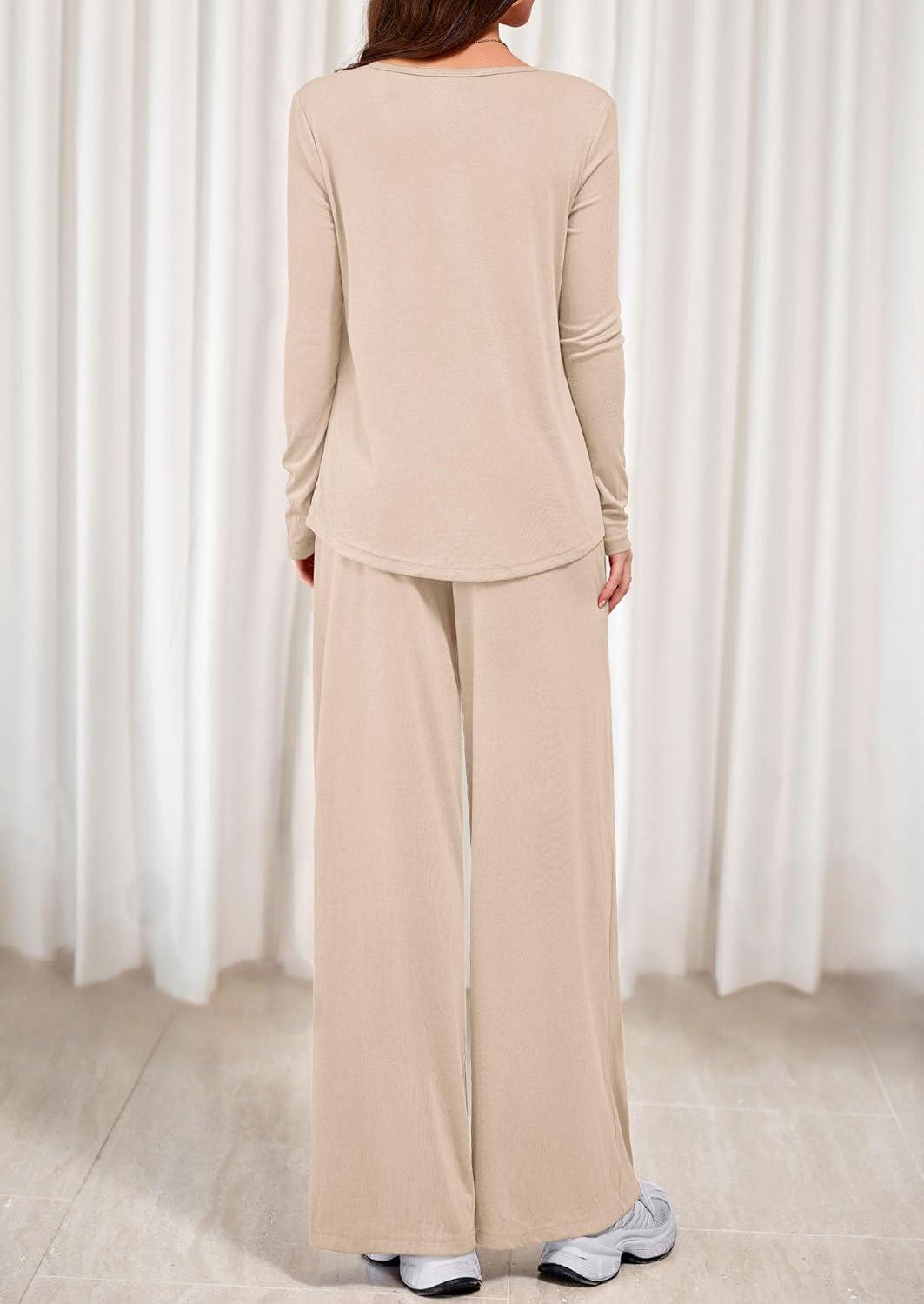 PRETTYGARDEN Women's 2 Piece Lounge Fall Sets 2025 Casual Long Sleeve Pajamas Comfy Pants Matching Travel Outfits Clothes(Beige)