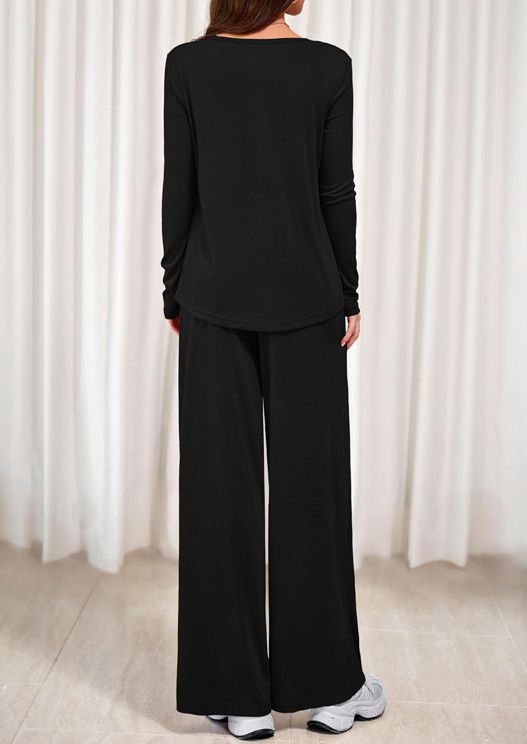 PRETTYGARDEN Women's 2 Piece Lounge Fall Sets 2025 Casual Long Sleeve Pajamas Comfy Pants Matching Travel Outfits Clothes(Black)