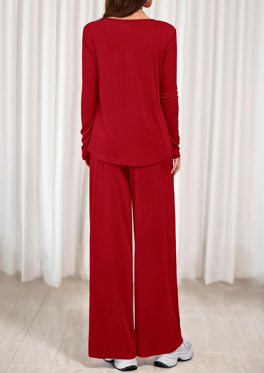 PRETTYGARDEN Women's 2 Piece Lounge Fall Sets 2025 Casual Long Sleeve Pajamas Comfy Pants Matching Travel Outfits Clothes(Red)