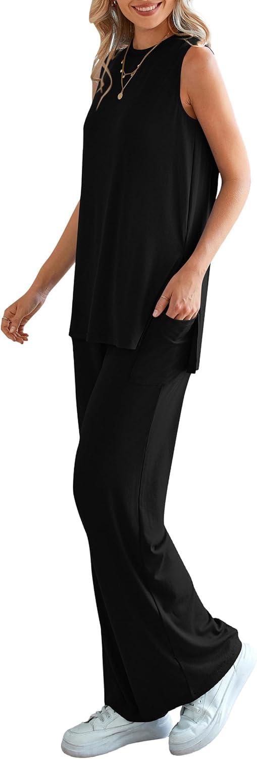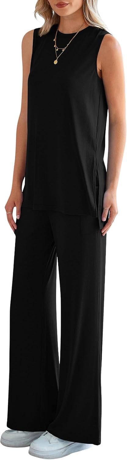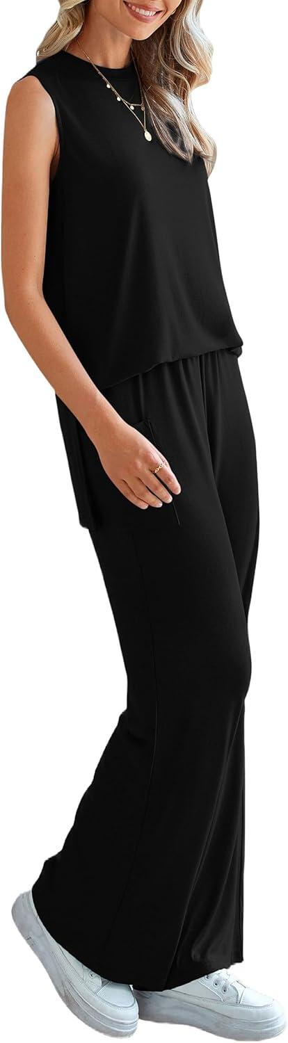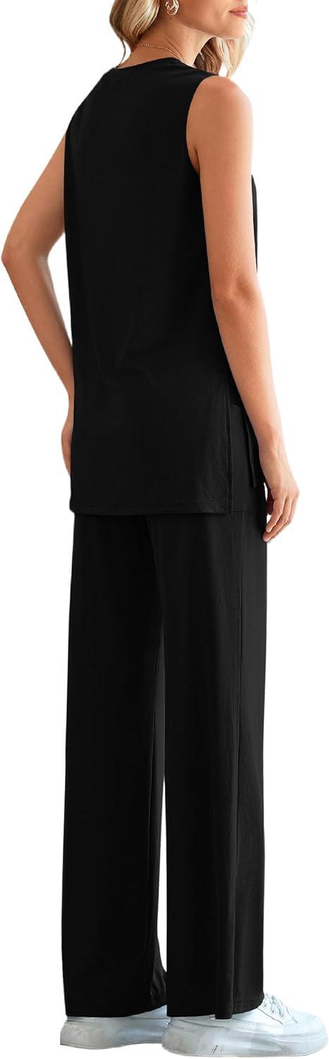 PRETTYGARDEN Women's 2 Piece Lounge Set 2025 Summer Casual Loose Tank Top Wide Leg Pants Matching Travel Outfits Tracksuit(Black)
