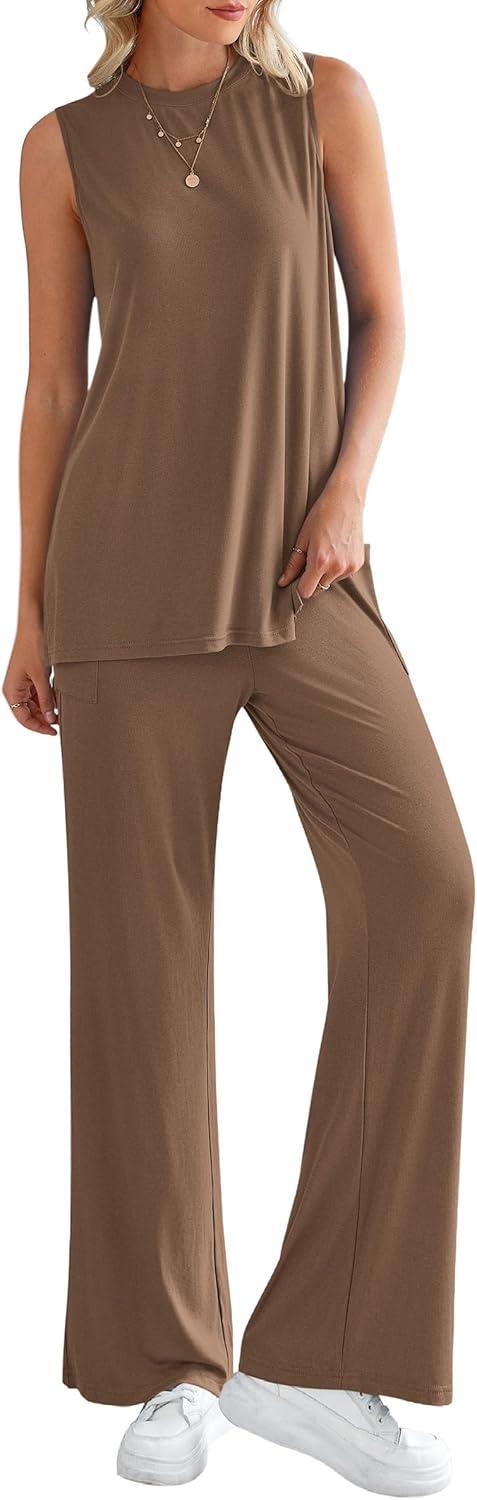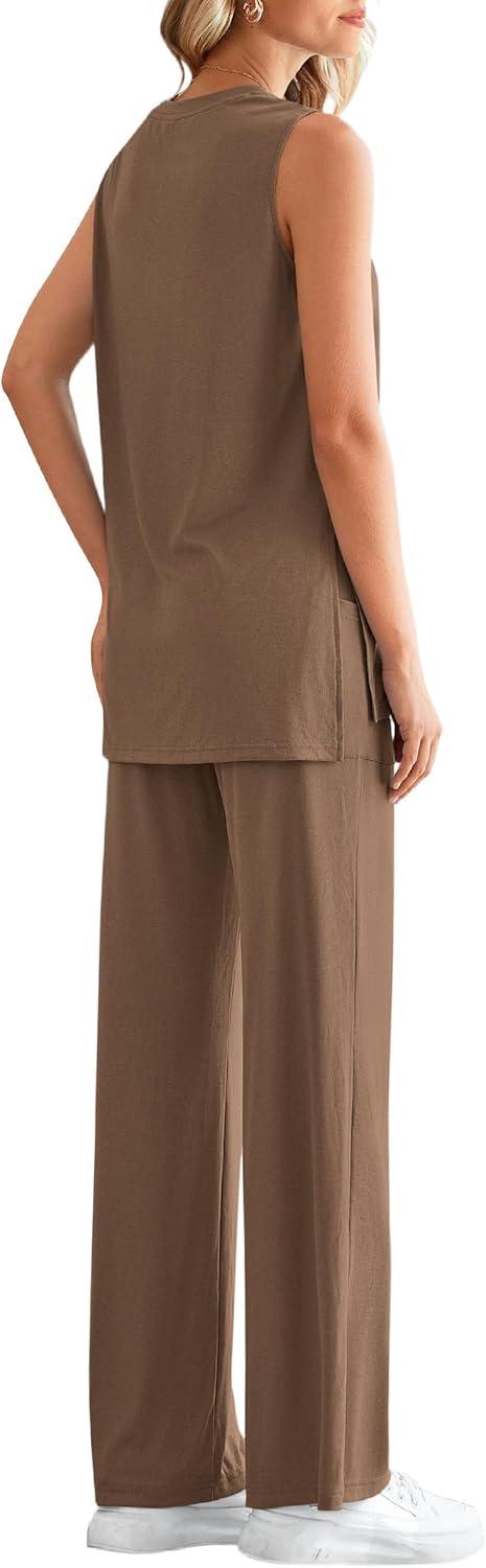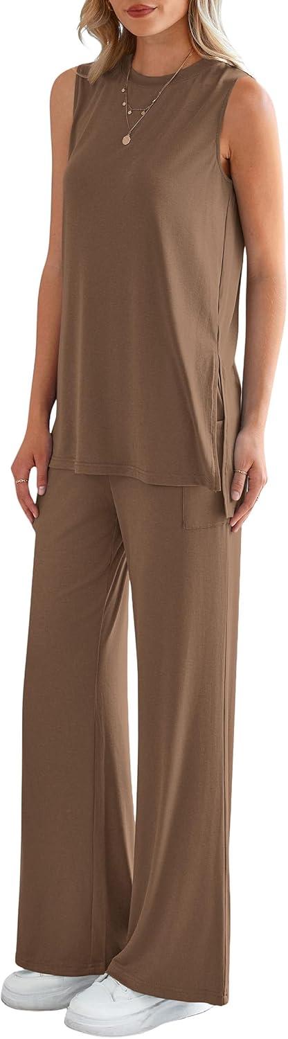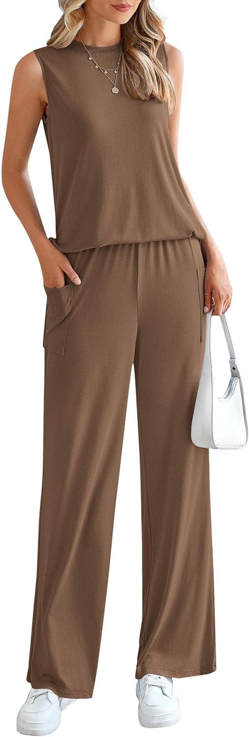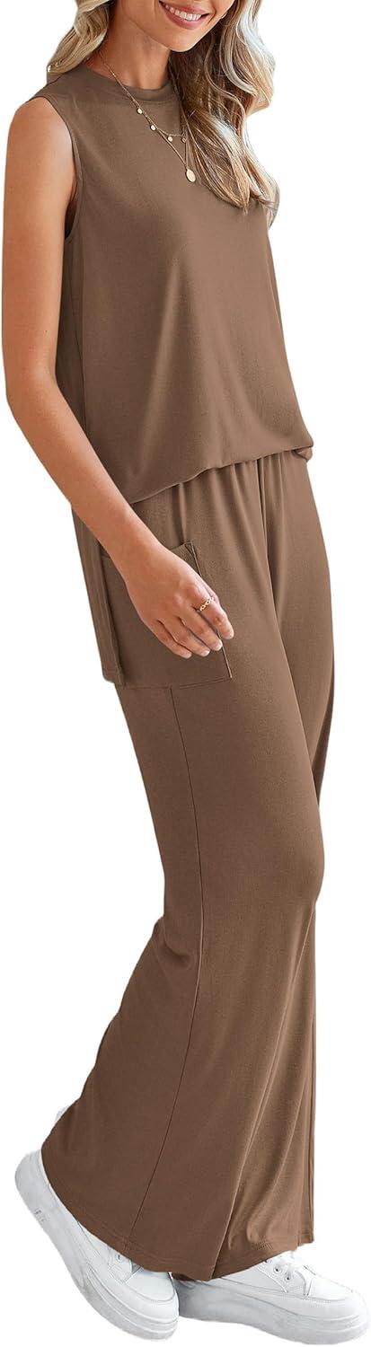 PRETTYGARDEN Women's 2 Piece Lounge Set 2025 Summer Casual Loose Tank Top Wide Leg Pants Matching Travel Outfits Tracksuit(Dark Khaki)