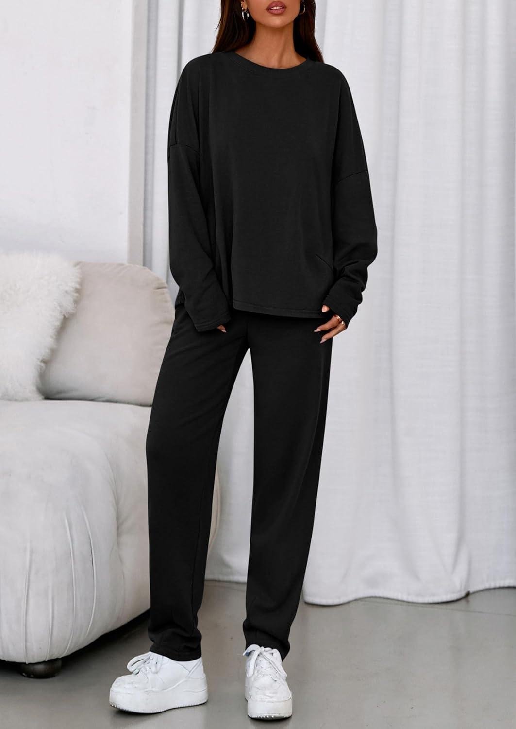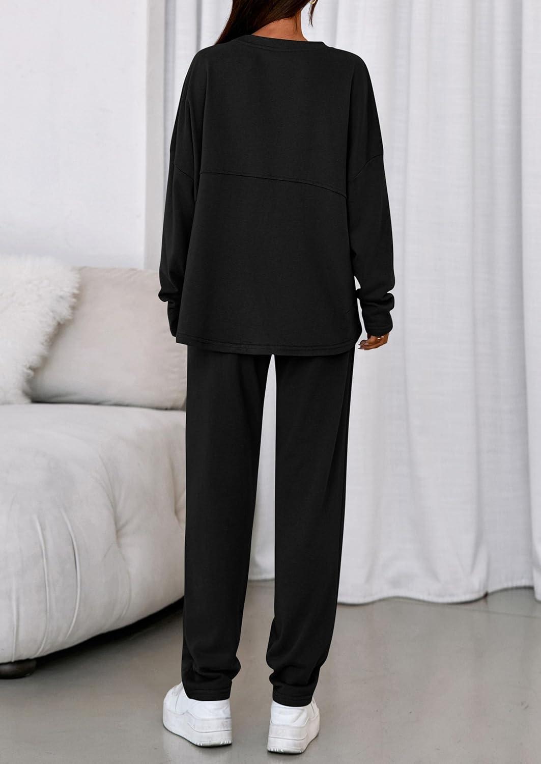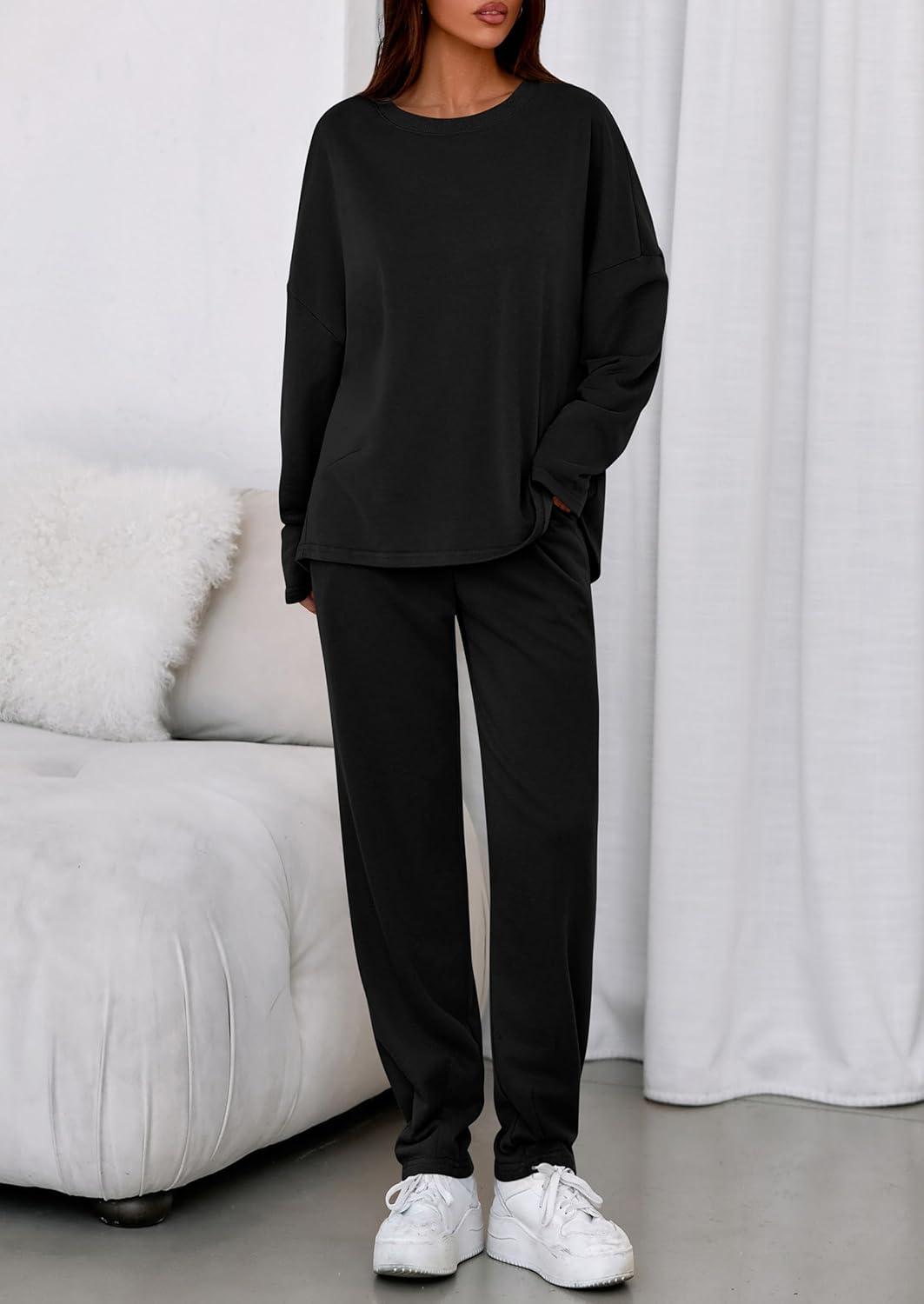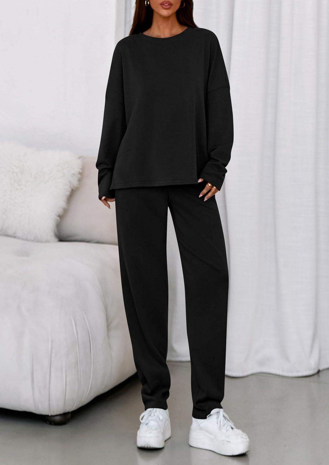 PRETTYGARDEN Womens 2 Piece Matching Lounge Sets 2025 Fall Long Sleeve Boatneck Sweatsuit Drawstring Sweatpants Pockets(Black)