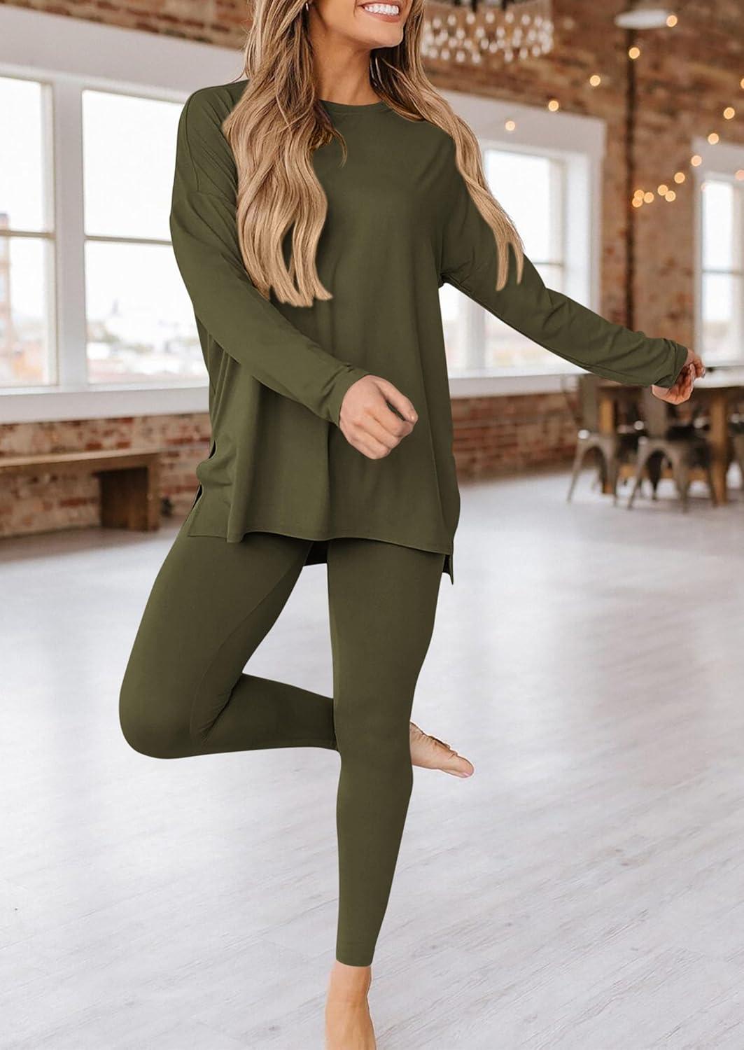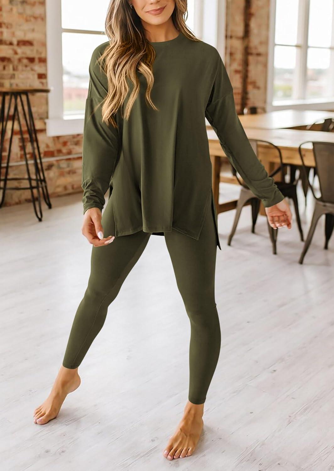 PRETTYGARDEN Women’s 2 Piece Outfits 2025 Fall Casual Long Sleeve Tunic Tops Legging Pants Matching Lounge Sets Sweatsuits(Army Green)