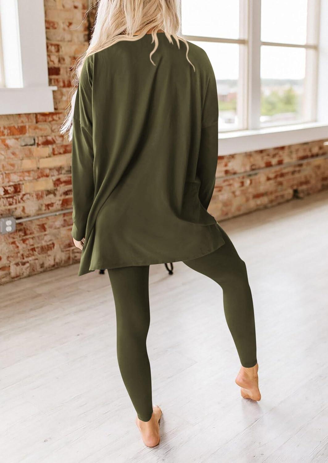 PRETTYGARDEN Women's 2 Piece Outfits 2025 Fall Casual Long Sleeve Tunic Tops Legging Pants Matching Lounge Sets Sweatsuits(Army Green)