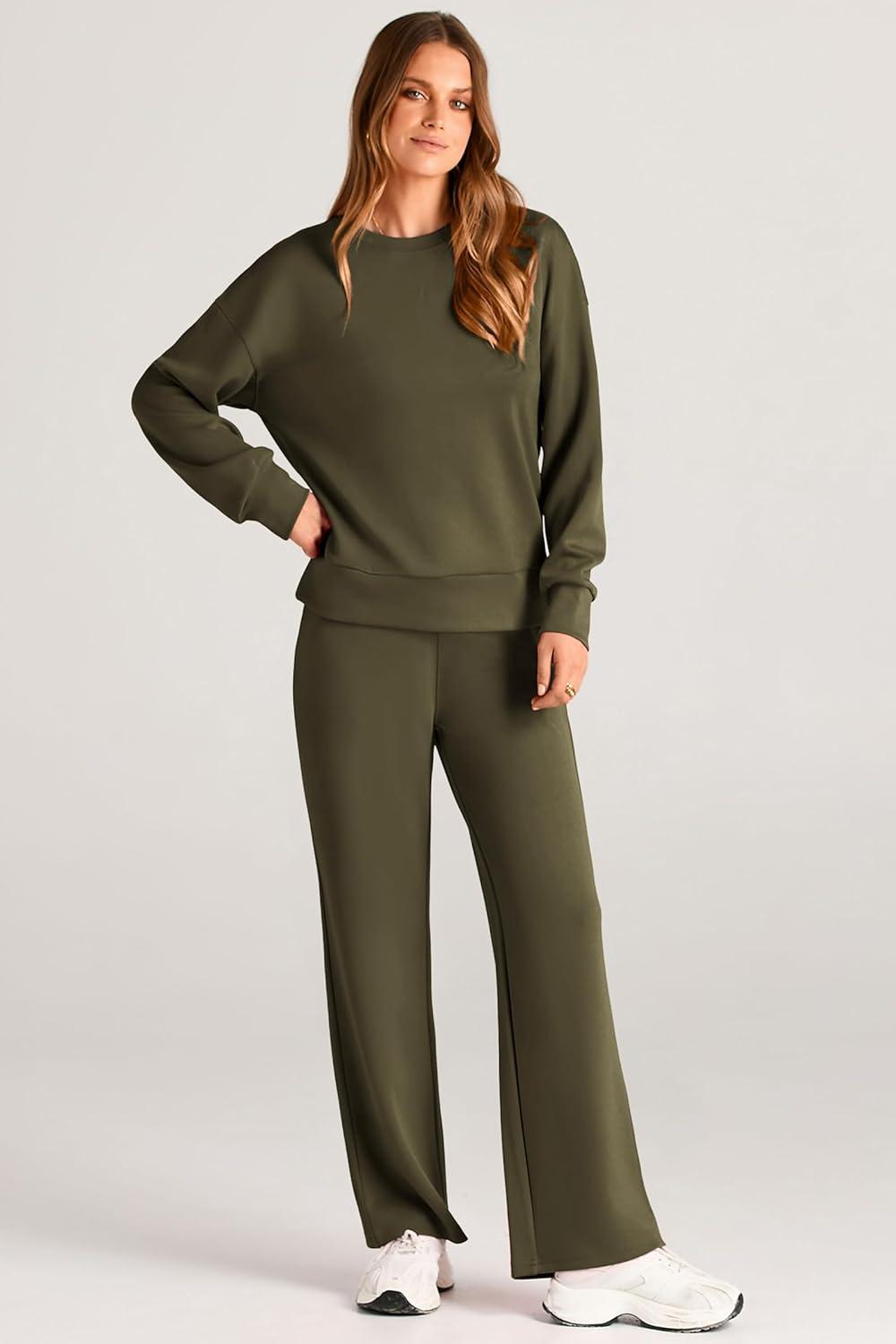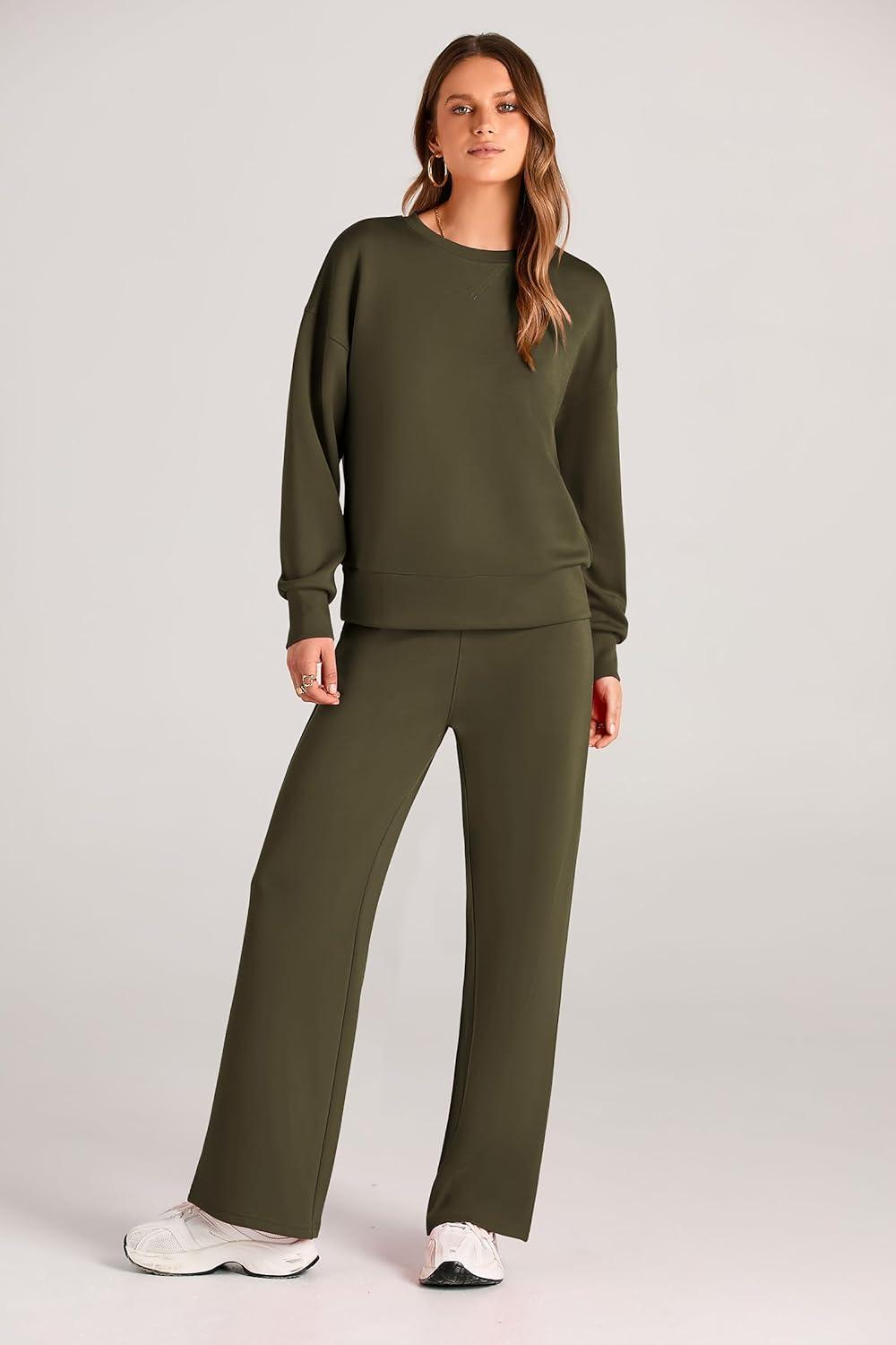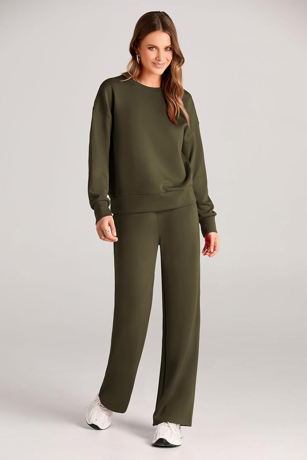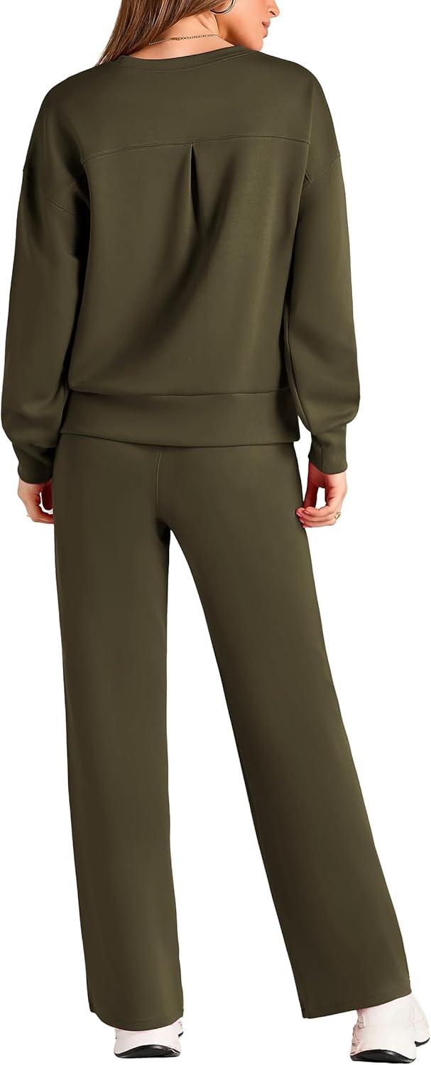 PRETTYGARDEN Womens 2 Piece Outfits 2025 Fall Long Sleeve Sweatshirt Wide Leg Pants Lounge Sets Winter Sweatsuits Tracksuit(Army Green)