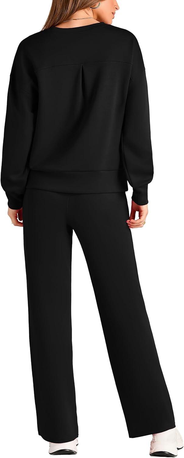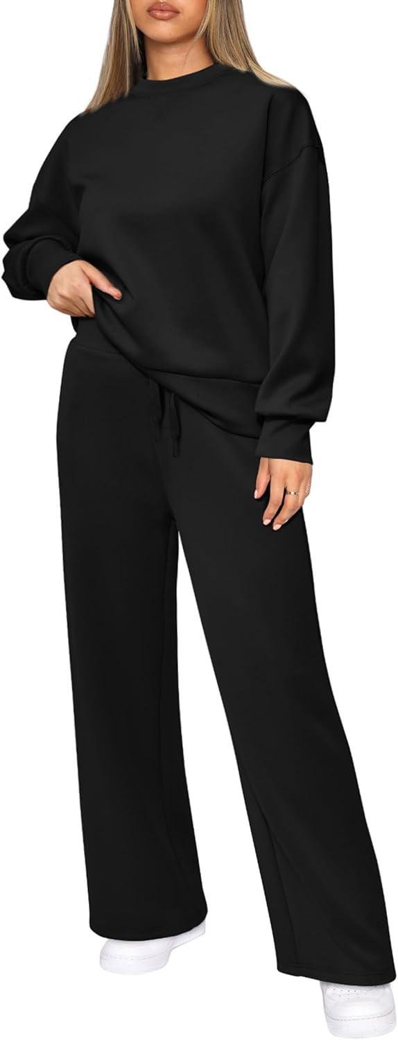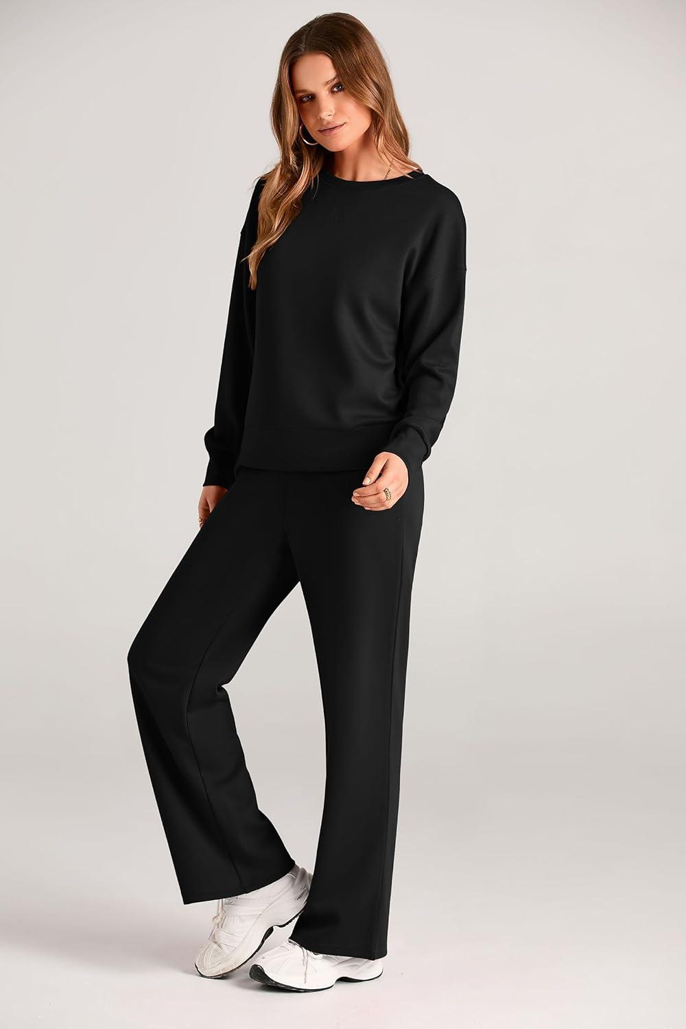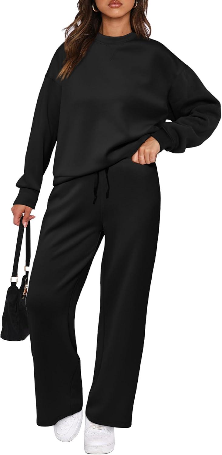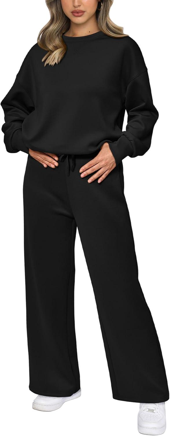PRETTYGARDEN Womens 2 Piece Outfits 2025 Fall Long Sleeve Sweatshirt Wide Leg Pants Lounge Sets Winter Sweatsuits Tracksuit(Black)