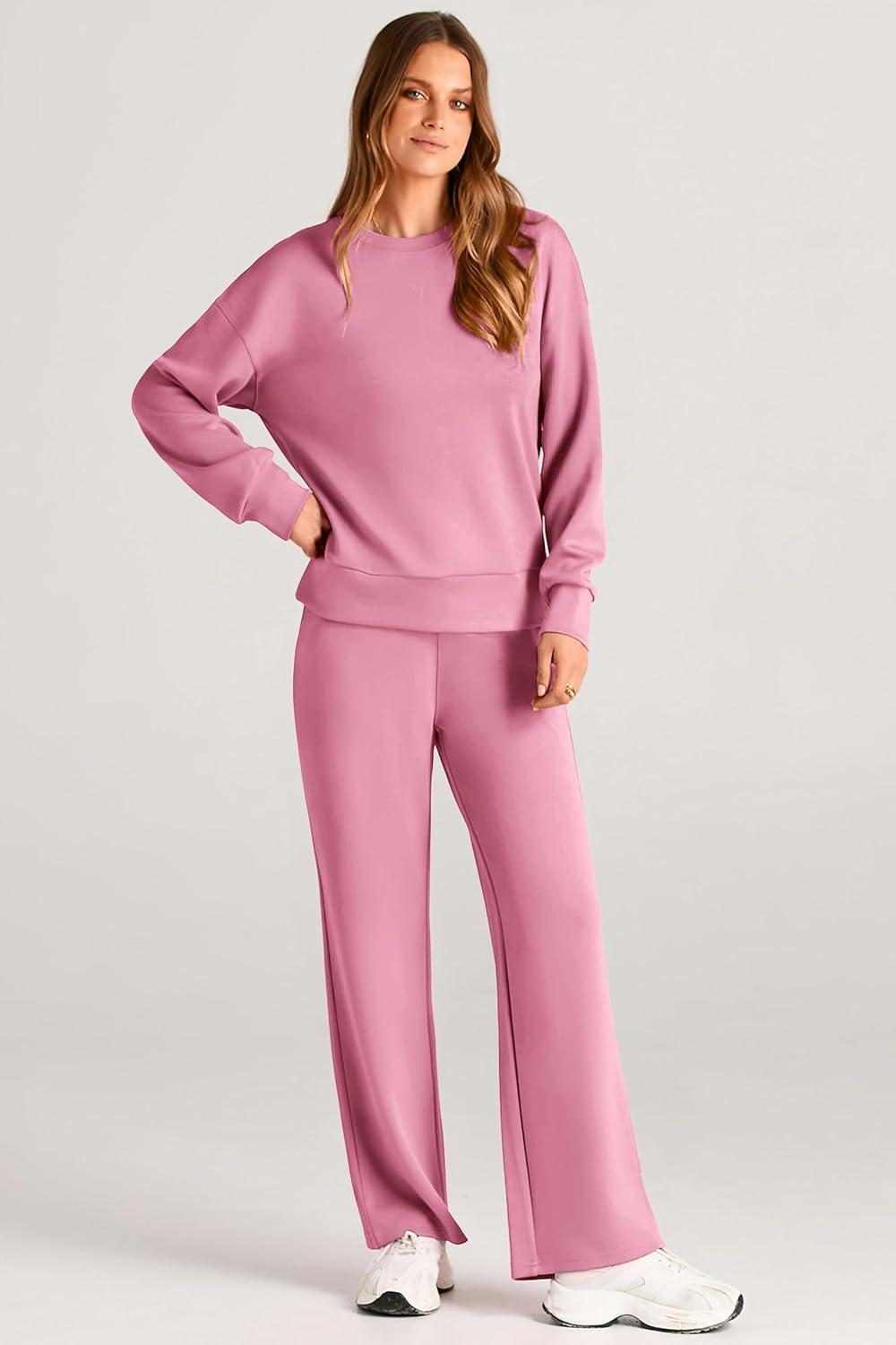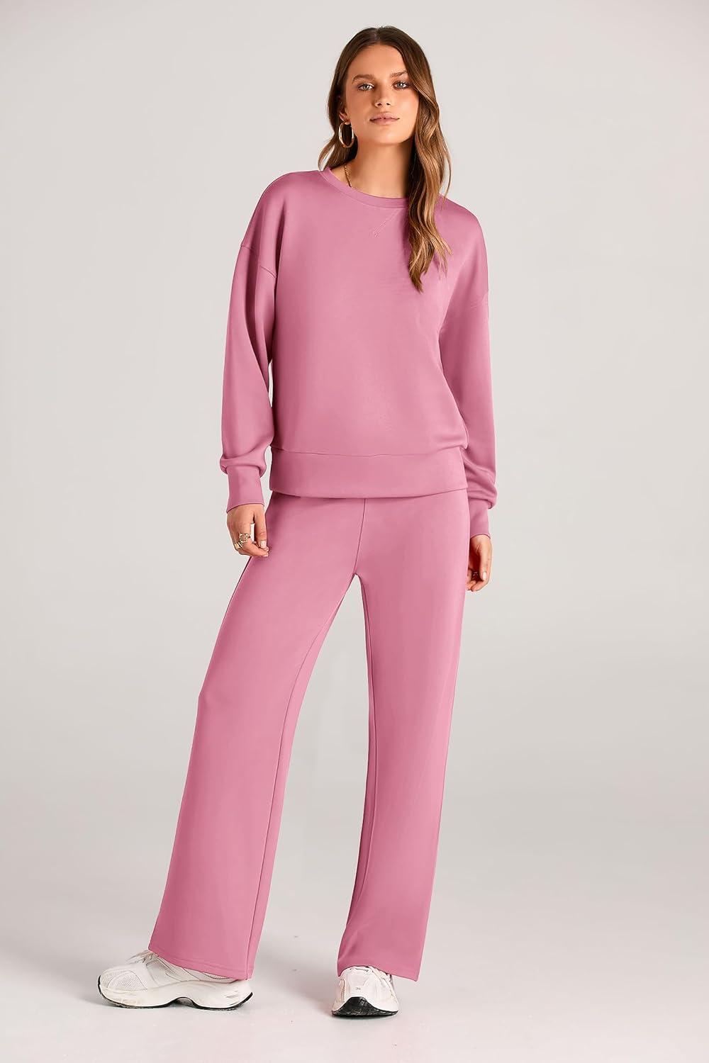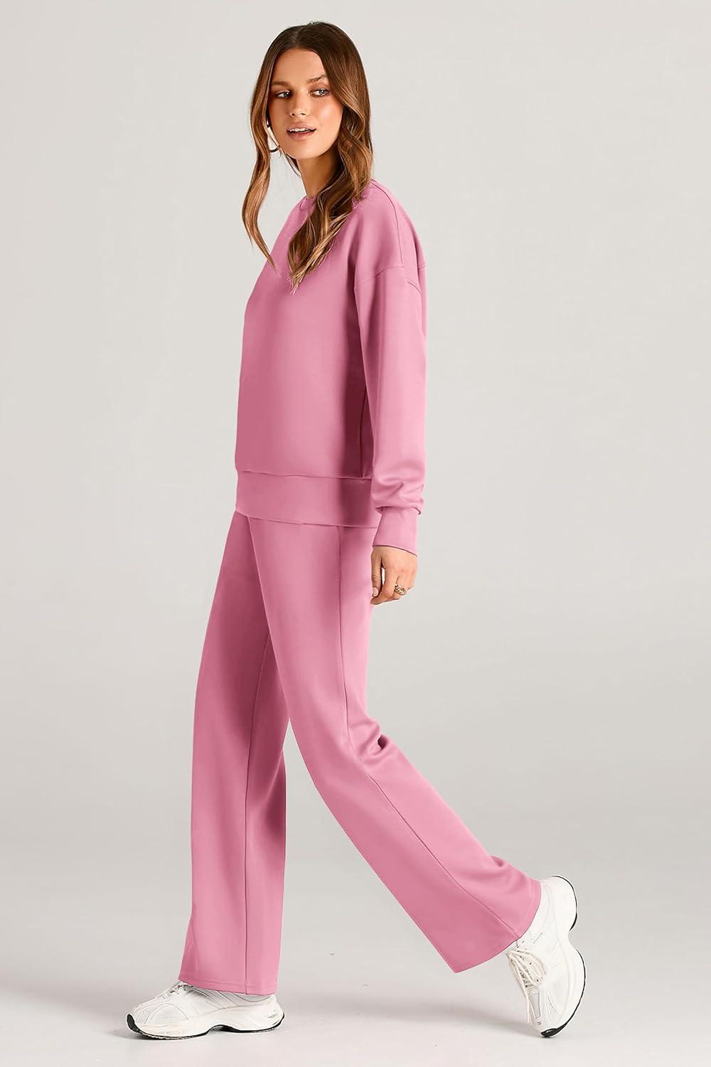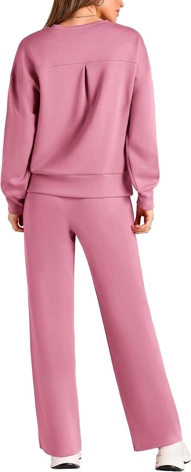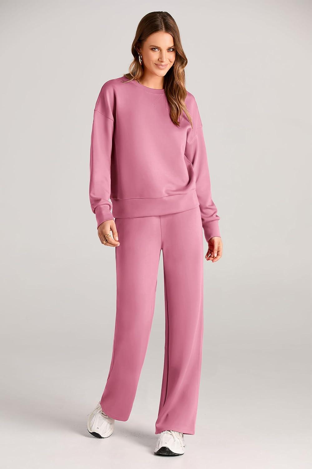 PRETTYGARDEN Womens 2 Piece Outfits 2025 Fall Long Sleeve Sweatshirt Wide Leg Pants Lounge Sets Winter Sweatsuits Tracksuit(Pink)