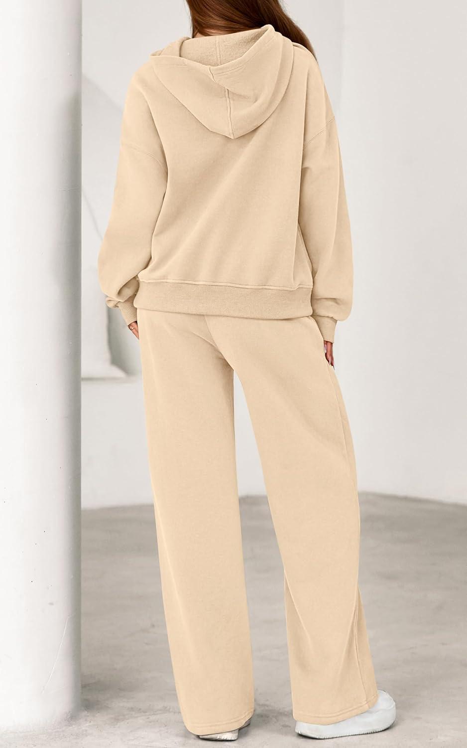 PRETTYGARDEN Women’s 2 Piece Outfits Fall Sweatsuits Oversized Hoodies Wide Leg Sweatpants Tracksuits Lounge Matching Sets(Beige)
