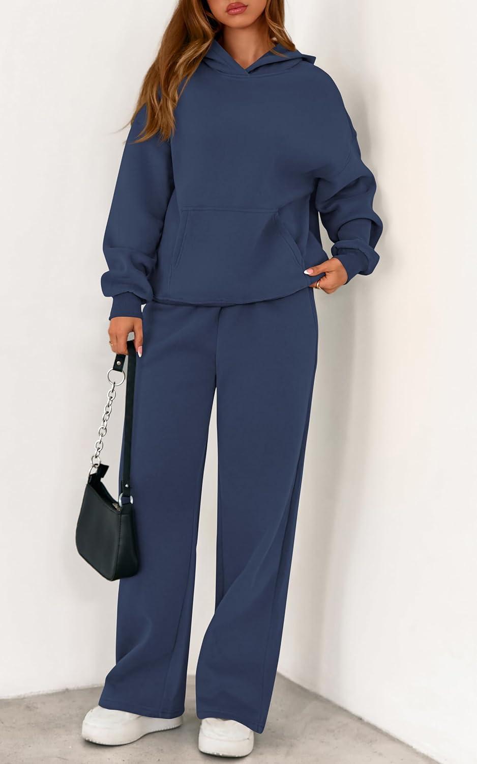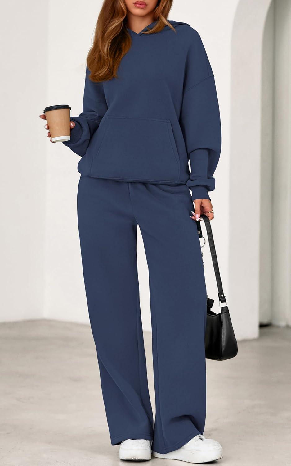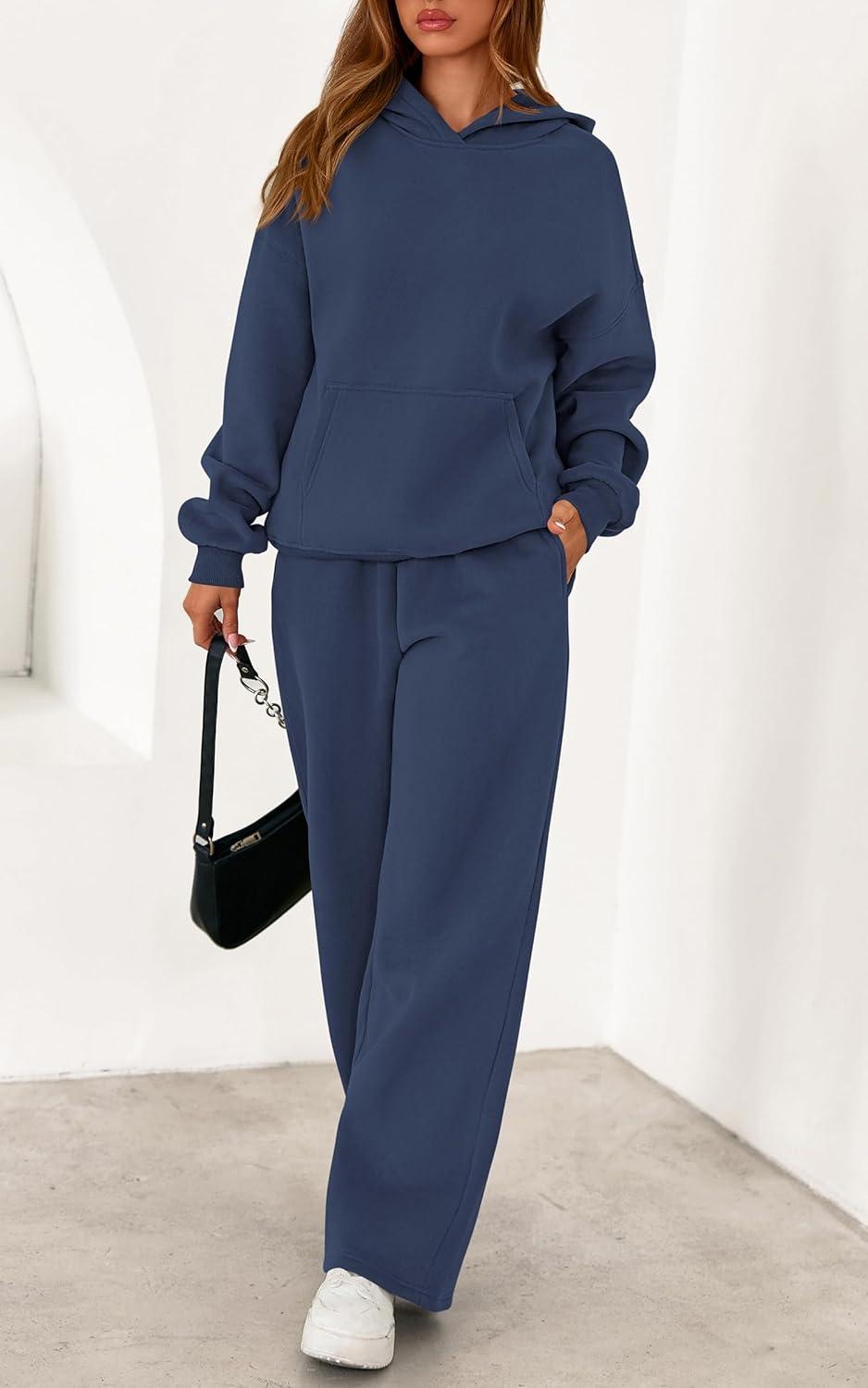 PRETTYGARDEN Women’s 2 Piece Outfits Fall Sweatsuits Oversized Hoodies Wide Leg Sweatpants Tracksuits Lounge Matching Sets(Grey Blue)