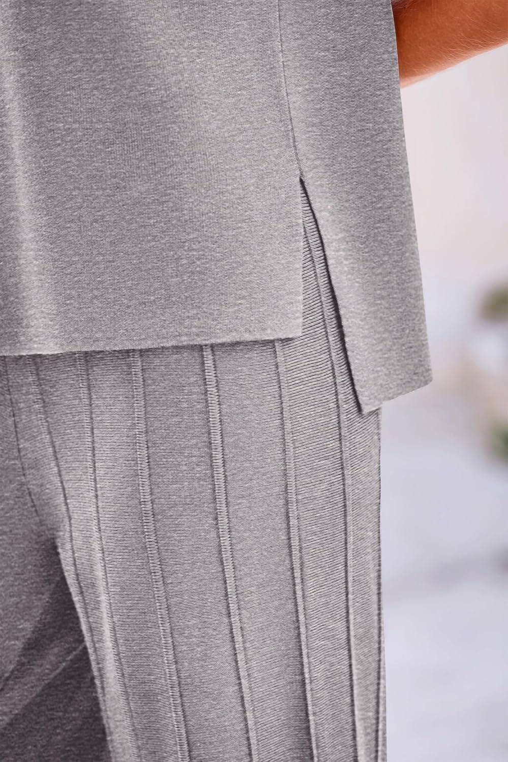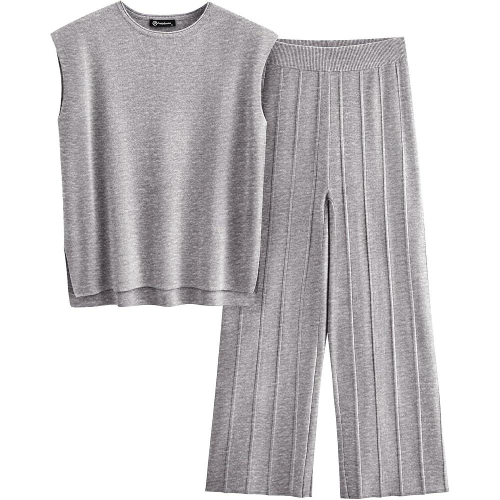 PRETTYGARDEN Women’s 2 Piece Outfits Knit Loungewear High Low Pullover Tops and Wide Leg Pants Casual Sweater Sets Tracksuits(Silver Grey)