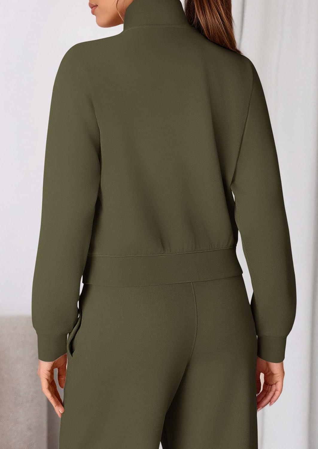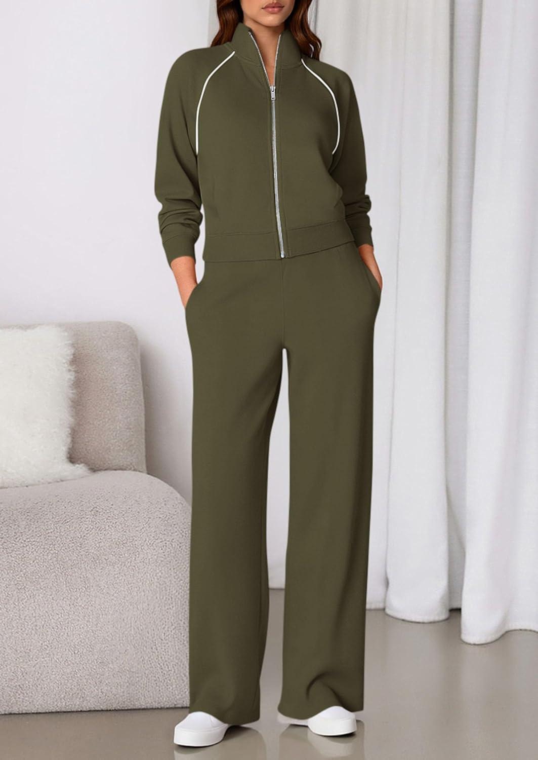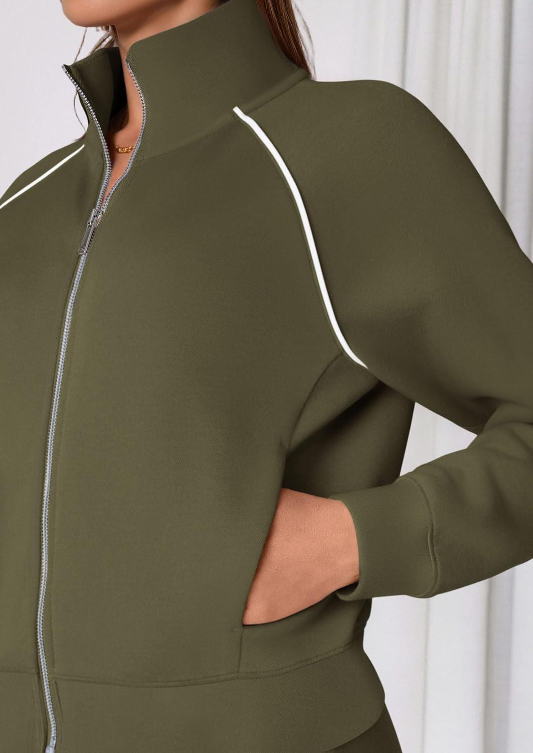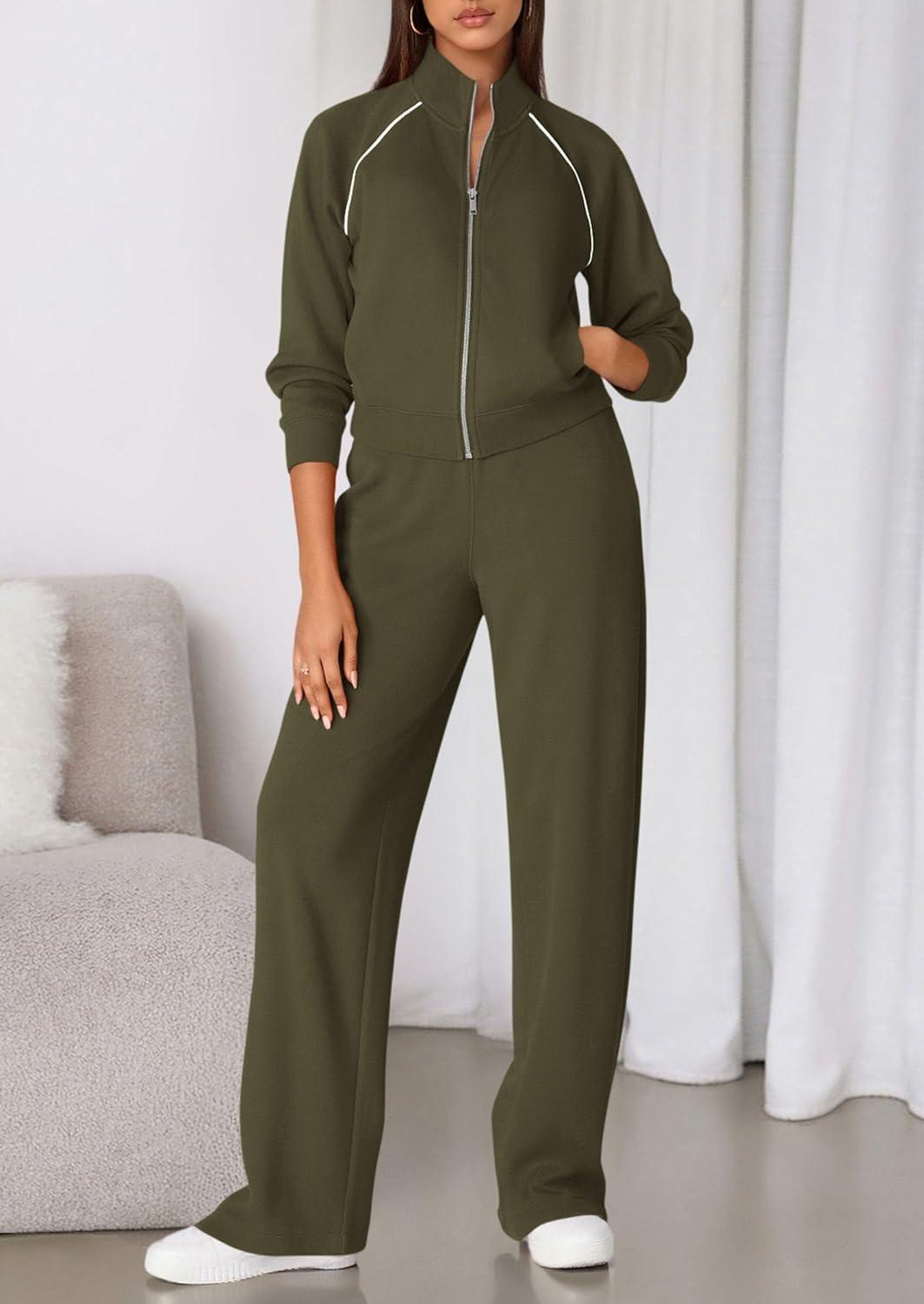 PRETTYGARDEN Womens 2 Piece Outfits Sweatsuits 2025 Fall Full Zip Sweatshirts Workout Pants Matching Lounge Sets Tracksuits(Army Green)