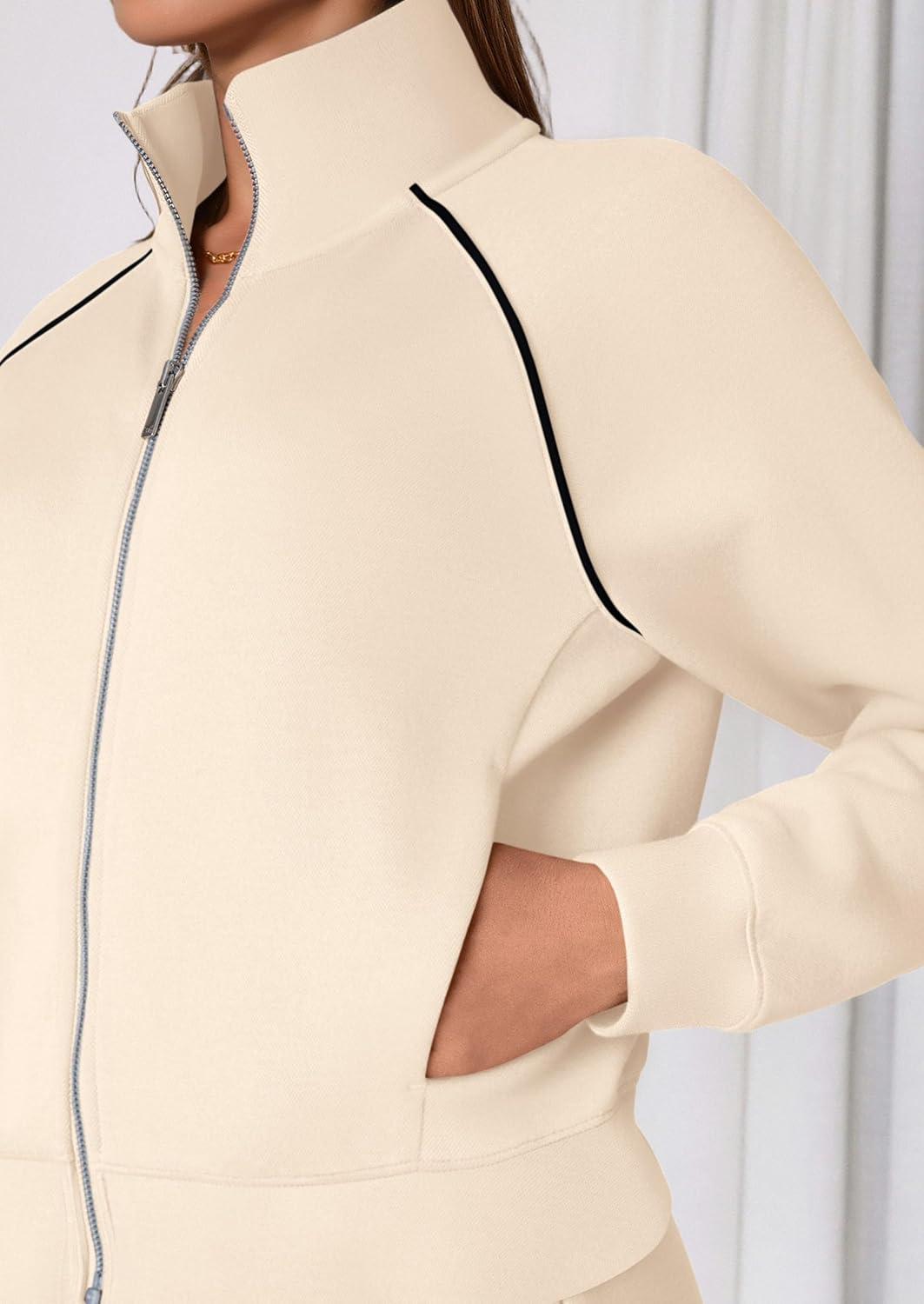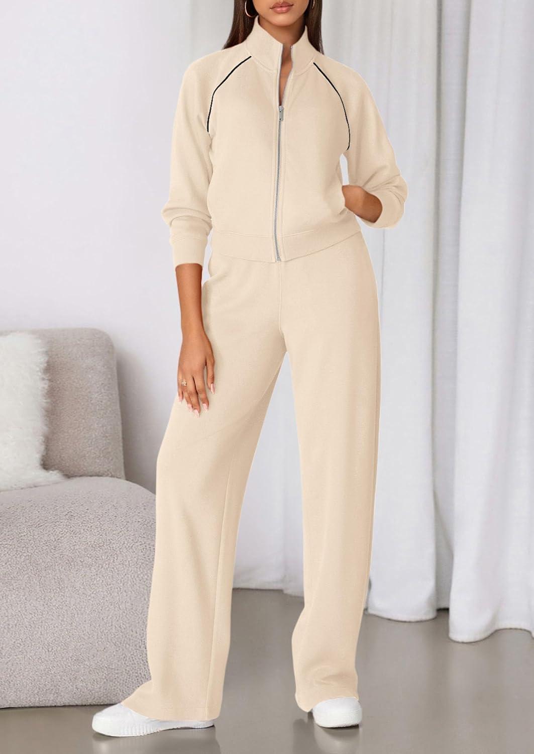 PRETTYGARDEN Womens 2 Piece Outfits Sweatsuits 2025 Fall Full Zip Sweatshirts Workout Pants Matching Lounge Sets Tracksuits(Beige)