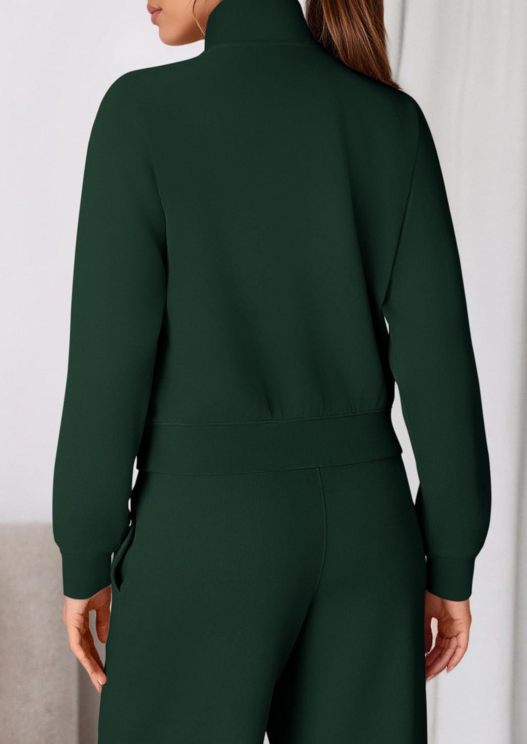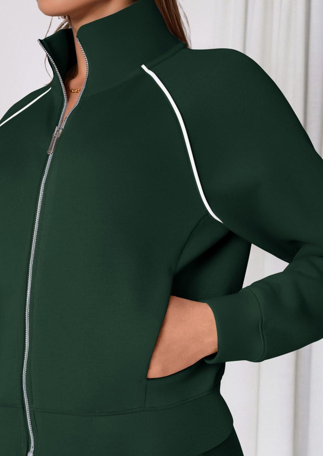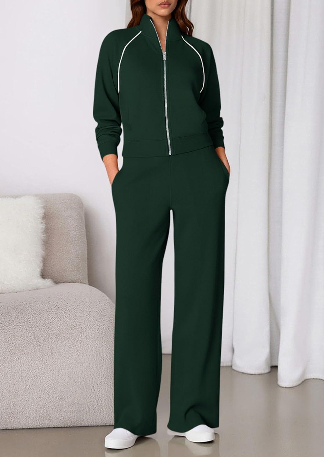 PRETTYGARDEN Womens 2 Piece Outfits Sweatsuits 2025 Fall Full Zip Sweatshirts Workout Pants Matching Lounge Sets Tracksuits(Dark Green)