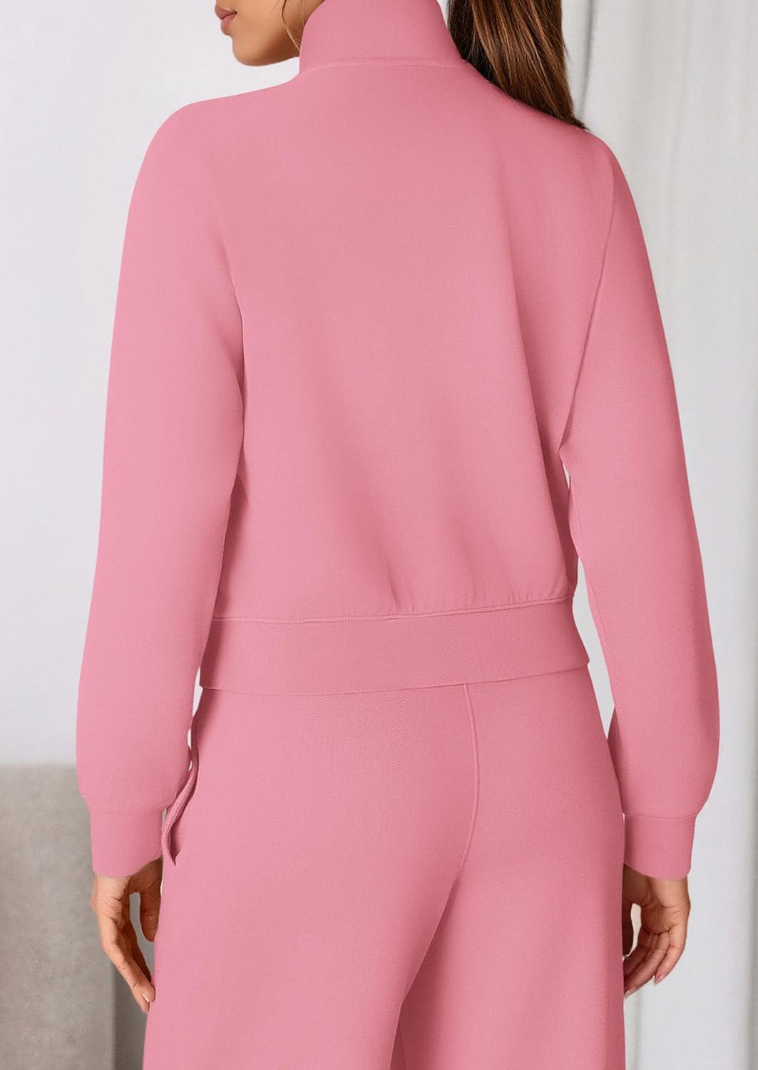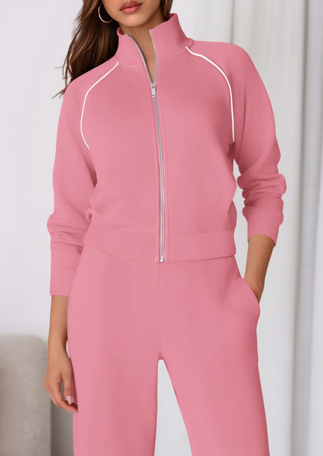 PRETTYGARDEN Womens 2 Piece Outfits Sweatsuits 2025 Fall Full Zip Sweatshirts Workout Pants Matching Lounge Sets Tracksuits(Pink)