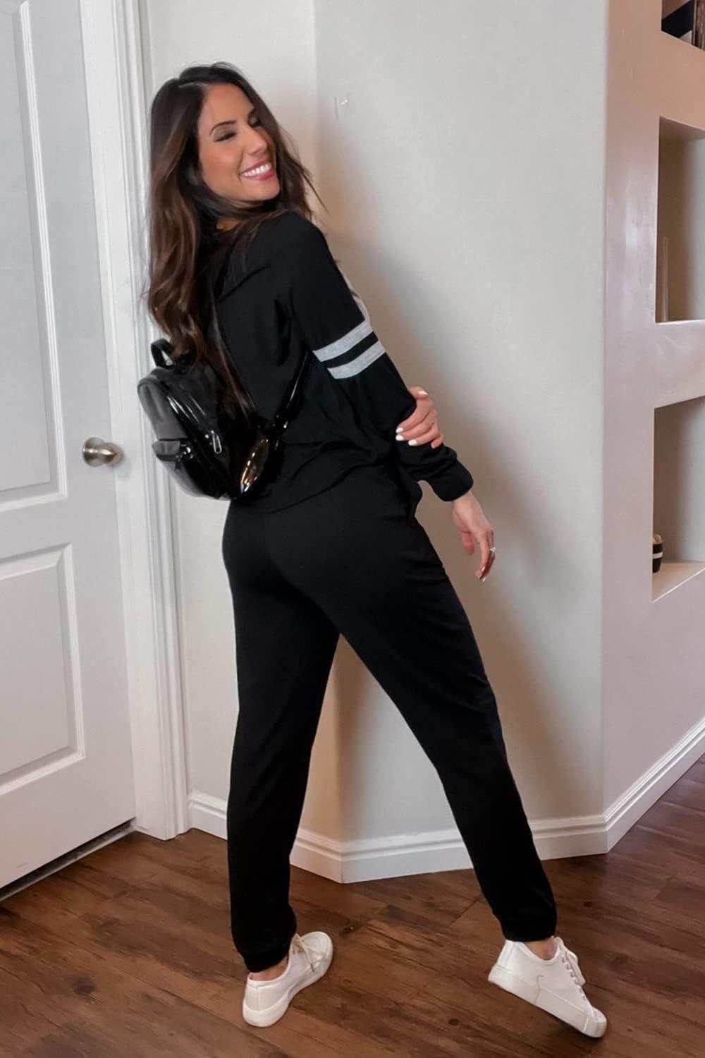 imagePRETTYGARDEN Womens 2 Piece Sets 2025 Long Sleeve Tops High Waisted Sweatpants Lounge Set Fall Fashion Travel OutfitsBlack