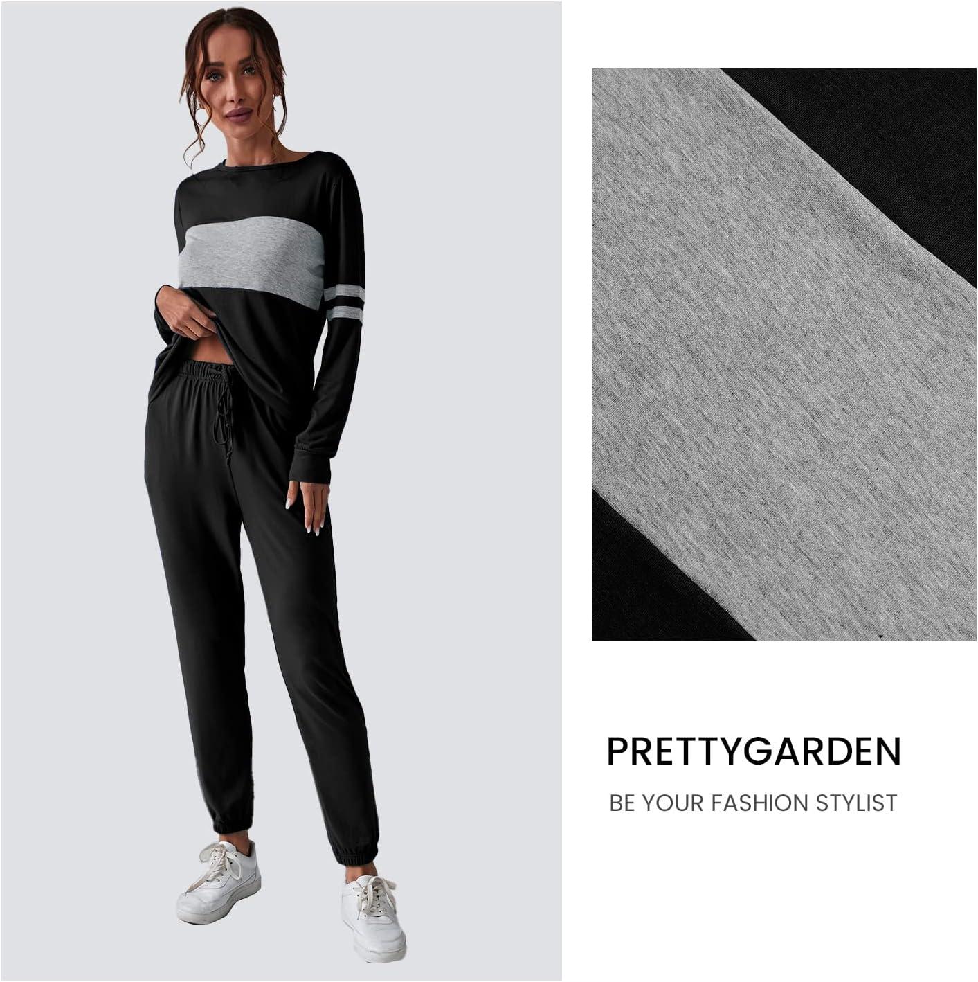 PRETTYGARDEN Womens 2 Piece Sets 2025 Long Sleeve Tops High Waisted Sweatpants Lounge Set Fall Fashion Travel Outfits(Black)