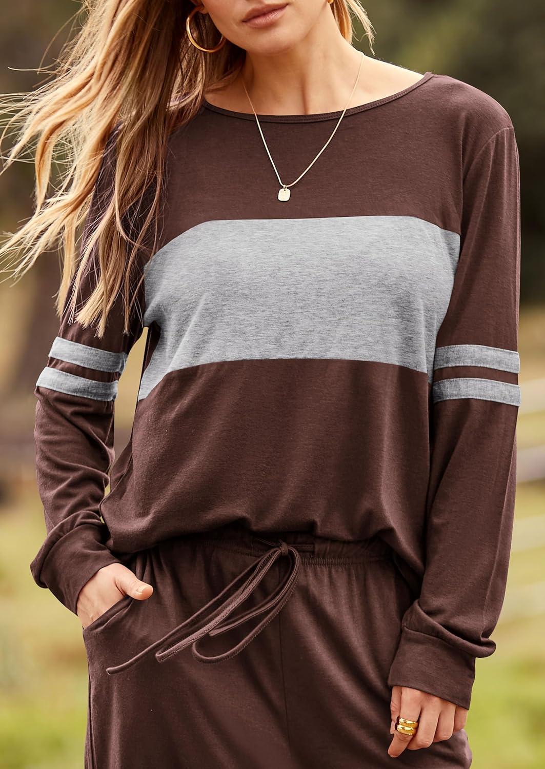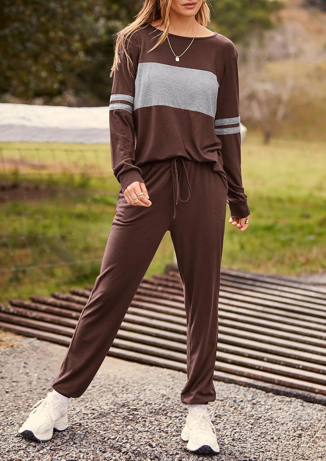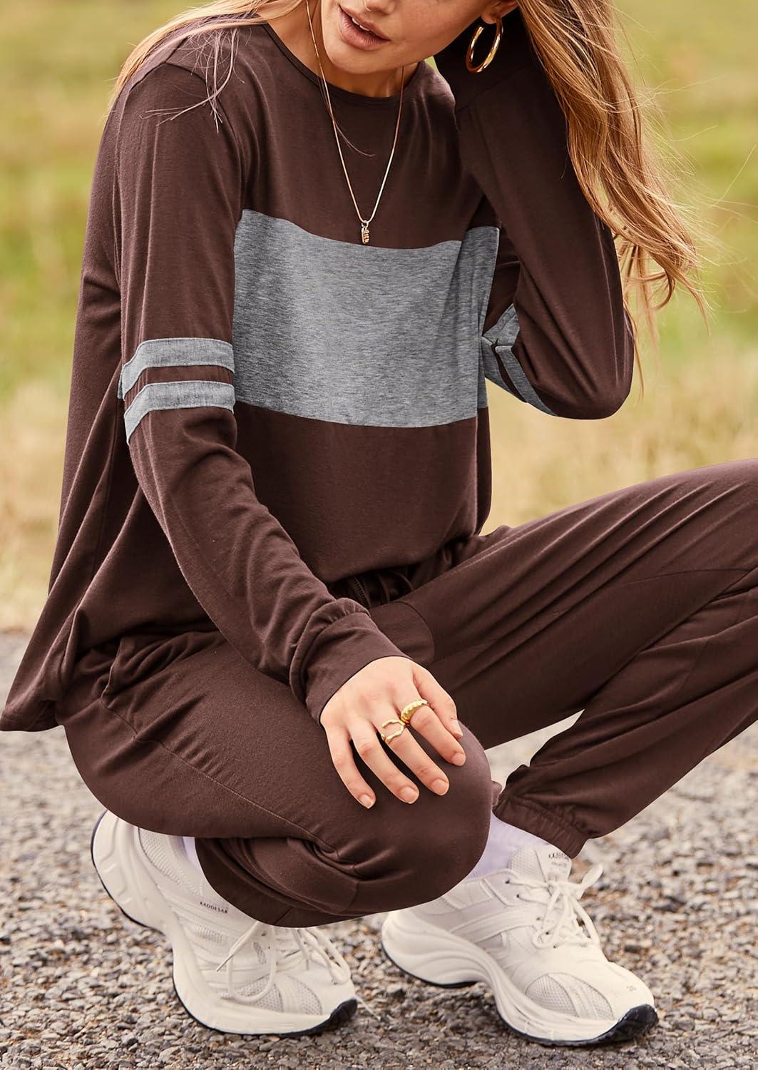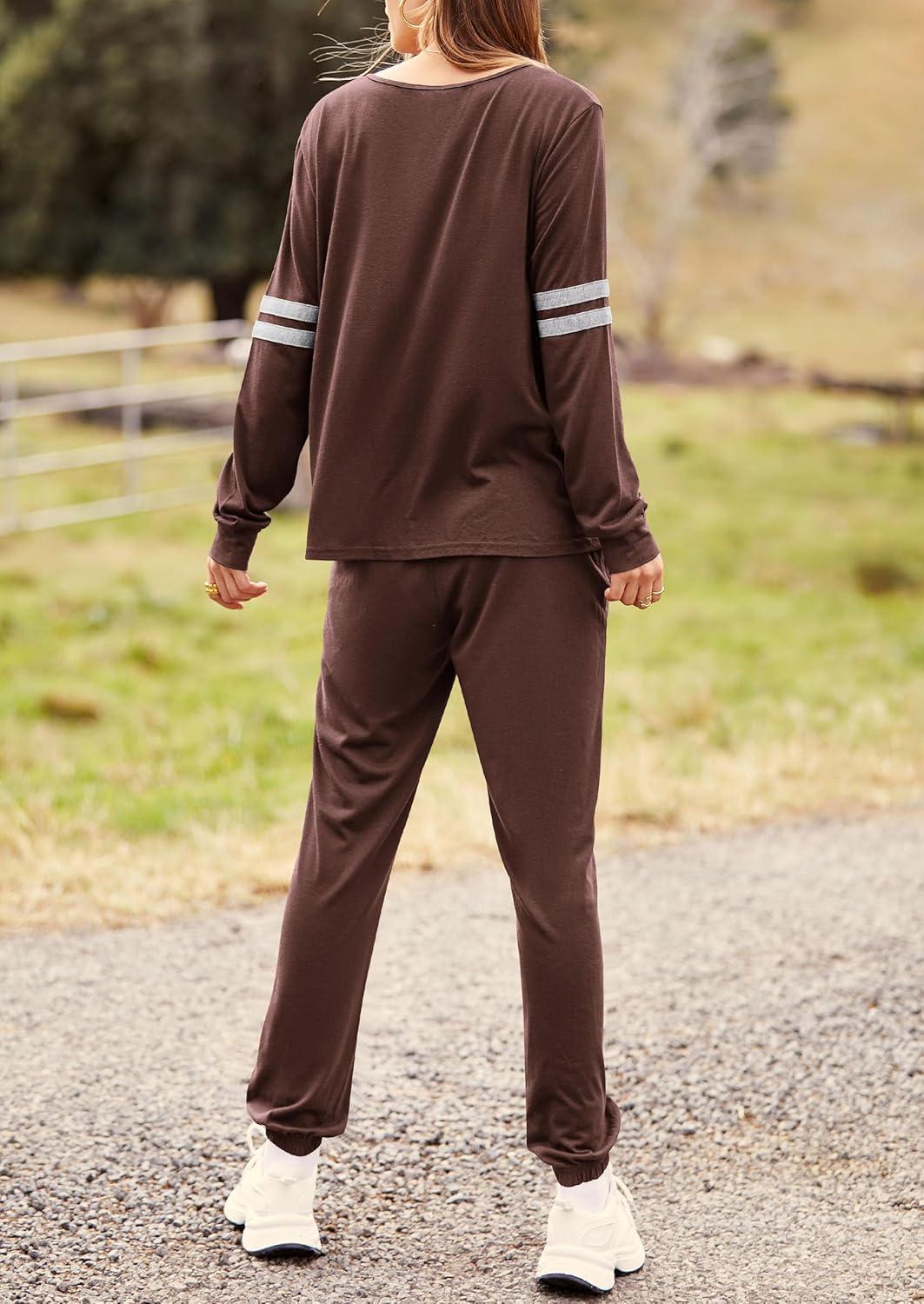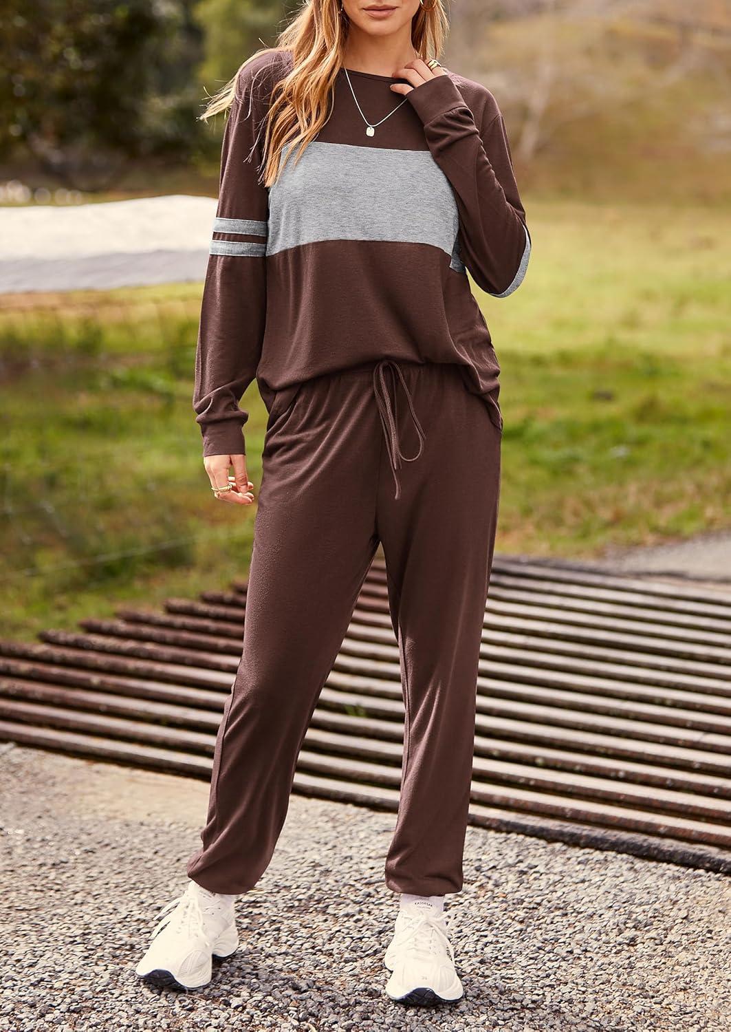 PRETTYGARDEN Womens 2 Piece Sets 2025 Long Sleeve Tops High Waisted Sweatpants Lounge Set Fall Fashion Travel Outfits(Brown)