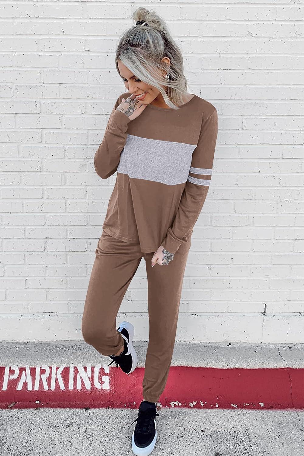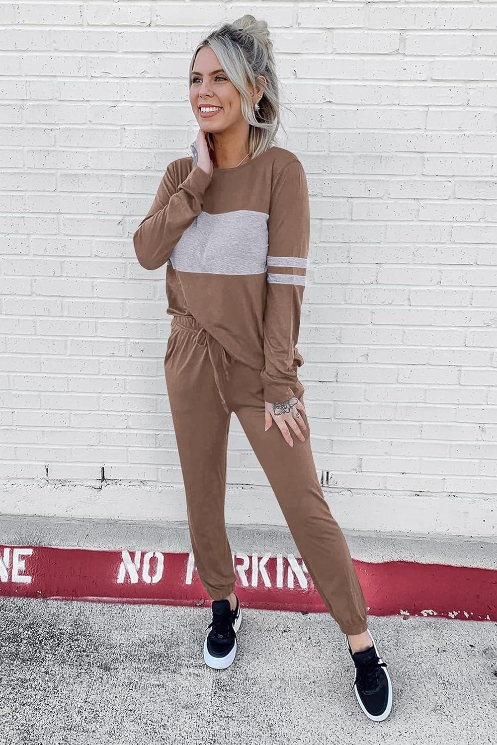 PRETTYGARDEN Womens 2 Piece Sets 2025 Long Sleeve Tops High Waisted Sweatpants Lounge Set Fall Fashion Travel Outfits(Dark Khaki)