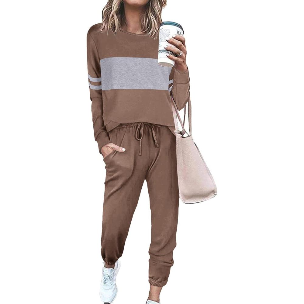 imagePRETTYGARDEN Womens 2 Piece Sets 2025 Long Sleeve Tops High Waisted Sweatpants Lounge Set Fall Fashion Travel OutfitsDark Khaki