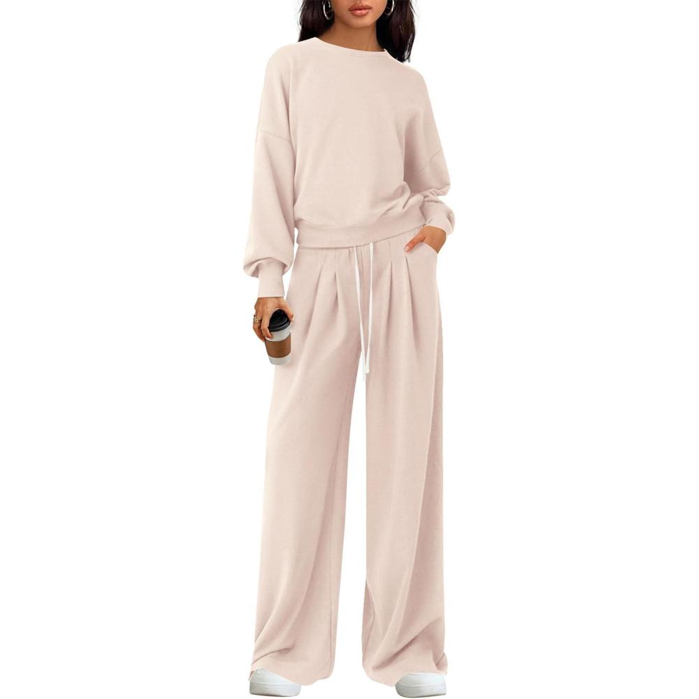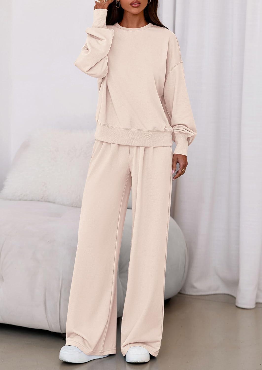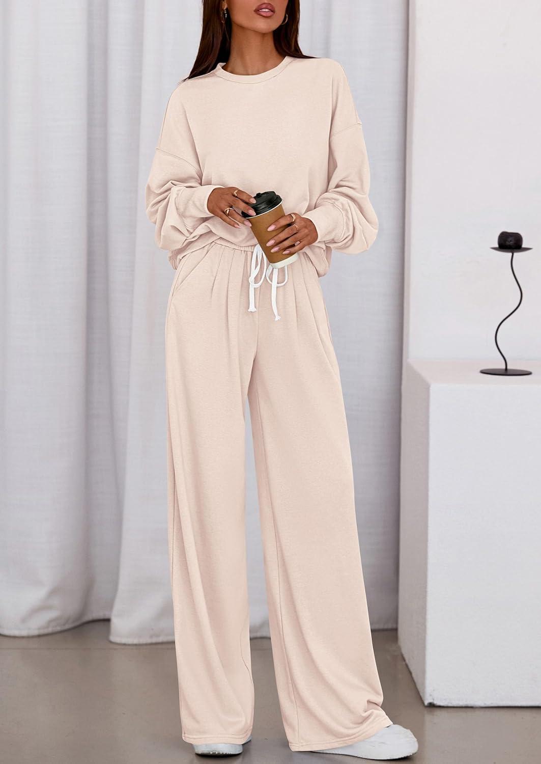 PRETTYGARDEN Womens 2 Piece Sets Long Sleeve Sweatshirt Wide Leg Pants Loose Matching Lounge Set Trendy Fall Outfits(Beige)