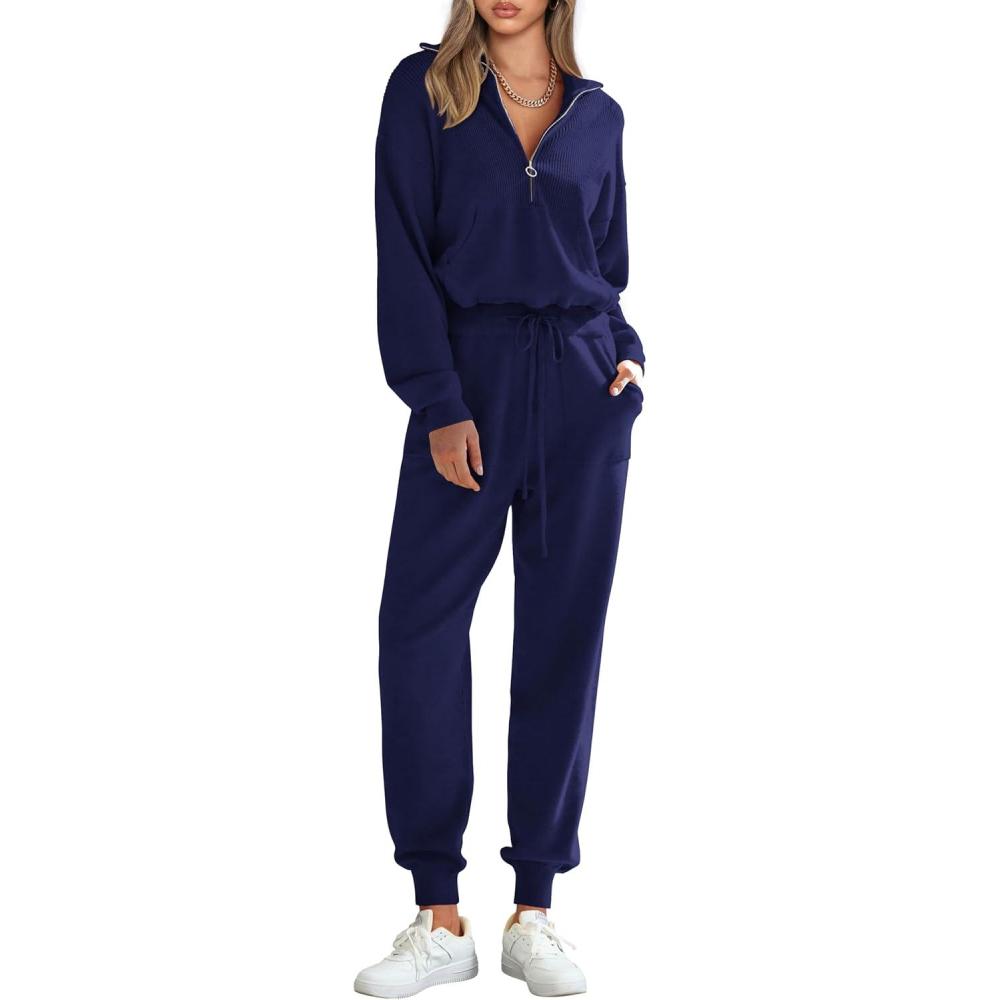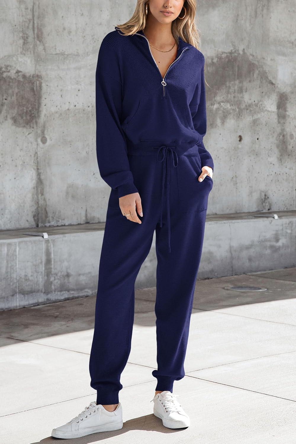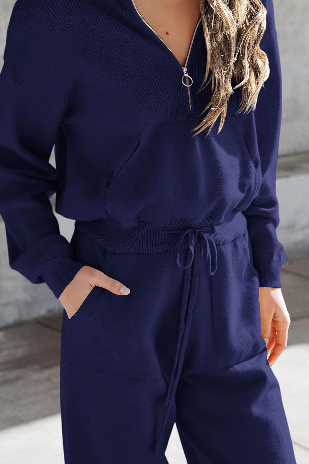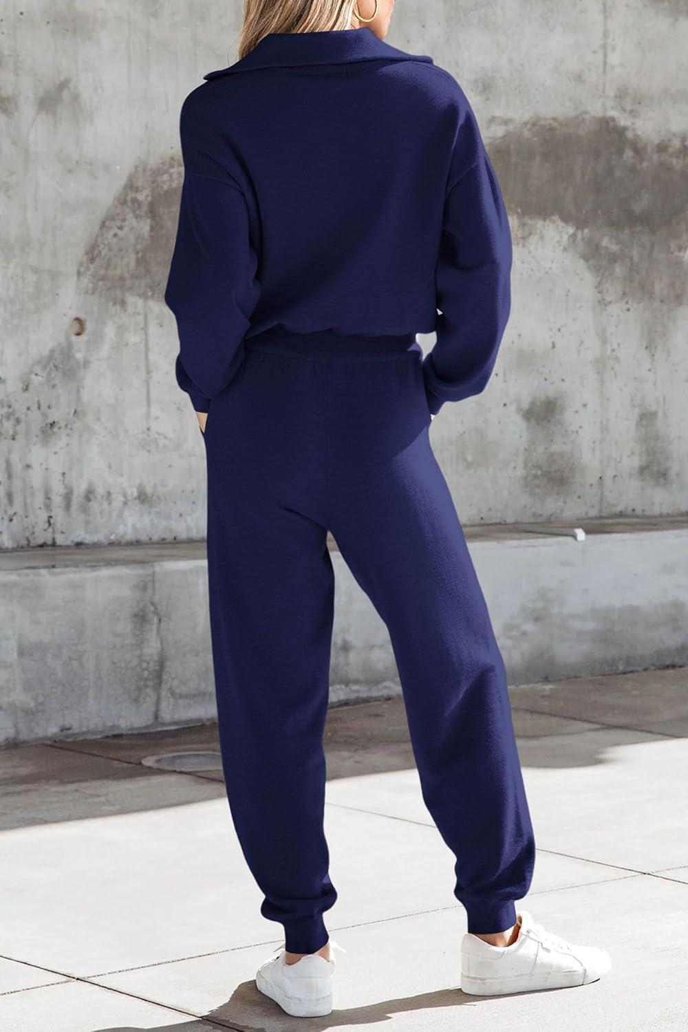 PRETTYGARDEN Women's 2 Piece Sweater Set Pullover Zip Up Sweatshirt Jogger Sweatpants Tracksuit Casual Outfit(Dark Blue)