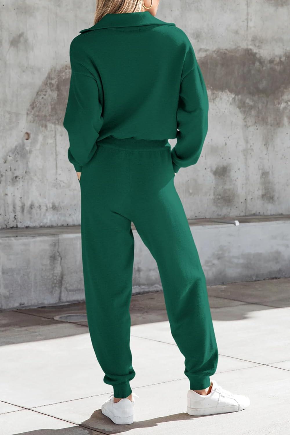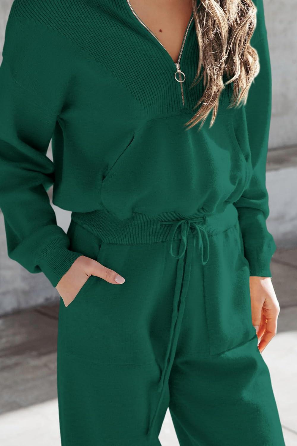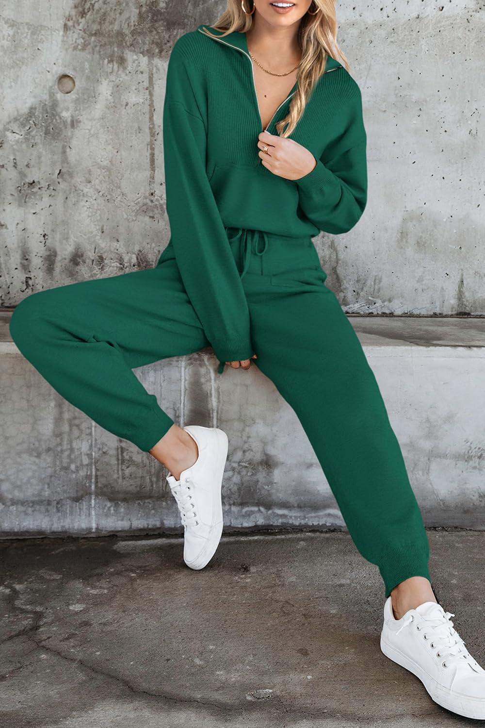 PRETTYGARDEN Women's 2 Piece Sweater Set Pullover Zip Up Sweatshirt Jogger Sweatpants Tracksuit Casual Outfit(Dark Green)