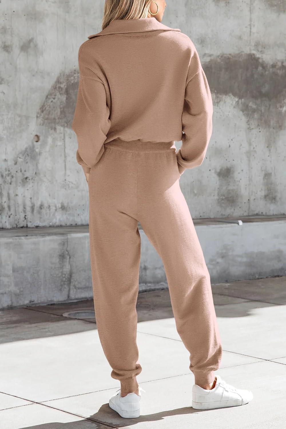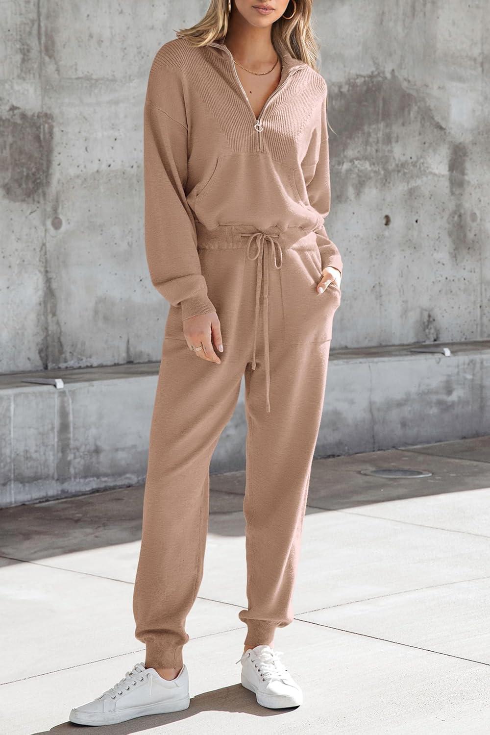 PRETTYGARDEN Women’s 2 Piece Sweater Set Pullover Zip Up Sweatshirt Jogger Sweatpants Tracksuit Casual Outfit(Khaki)