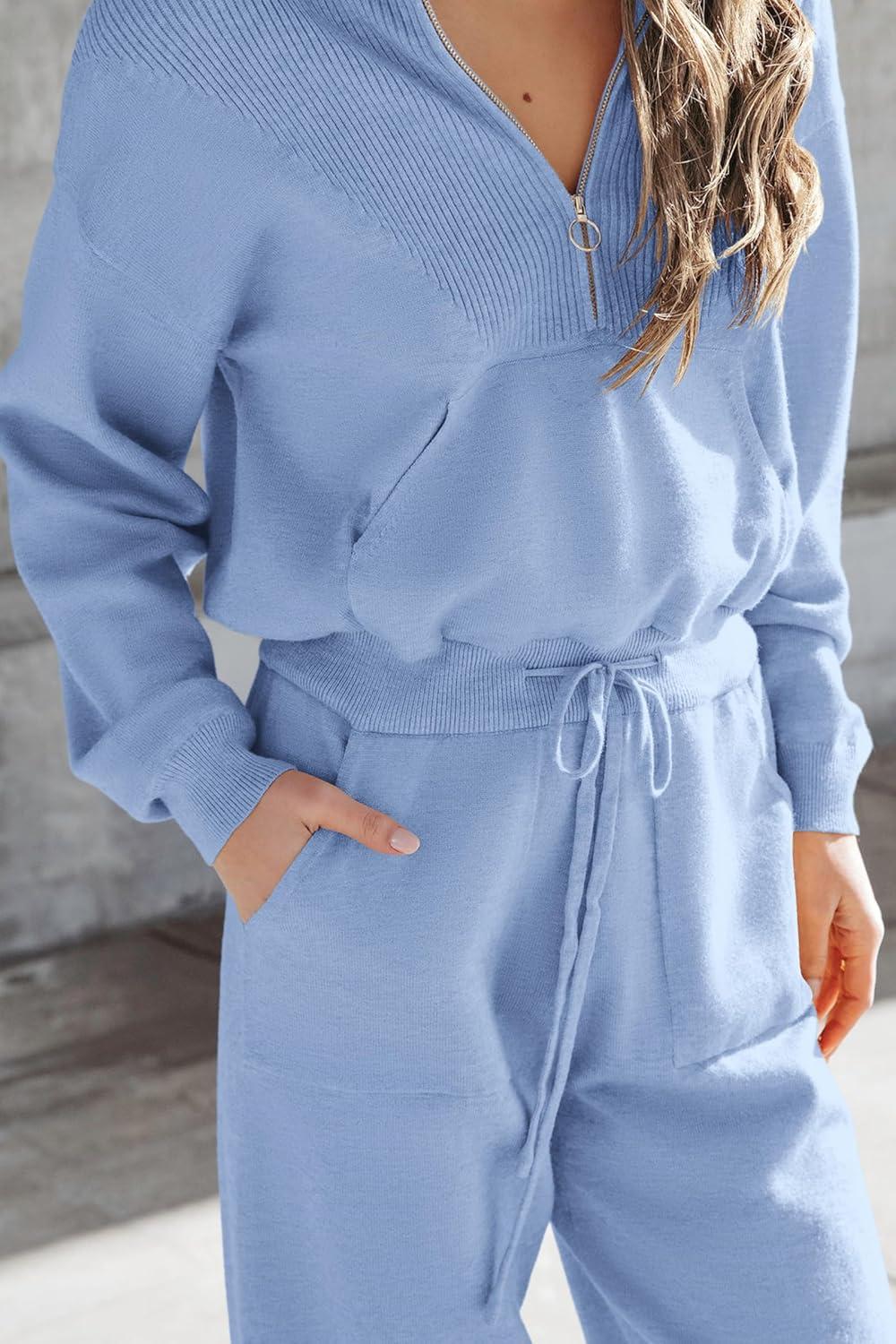 PRETTYGARDEN Women's 2 Piece Sweater Set Pullover Zip Up Sweatshirt Jogger Sweatpants Tracksuit Casual Outfit(Light Blue)