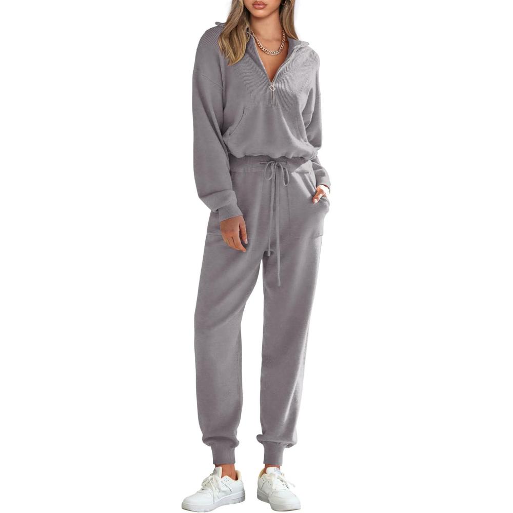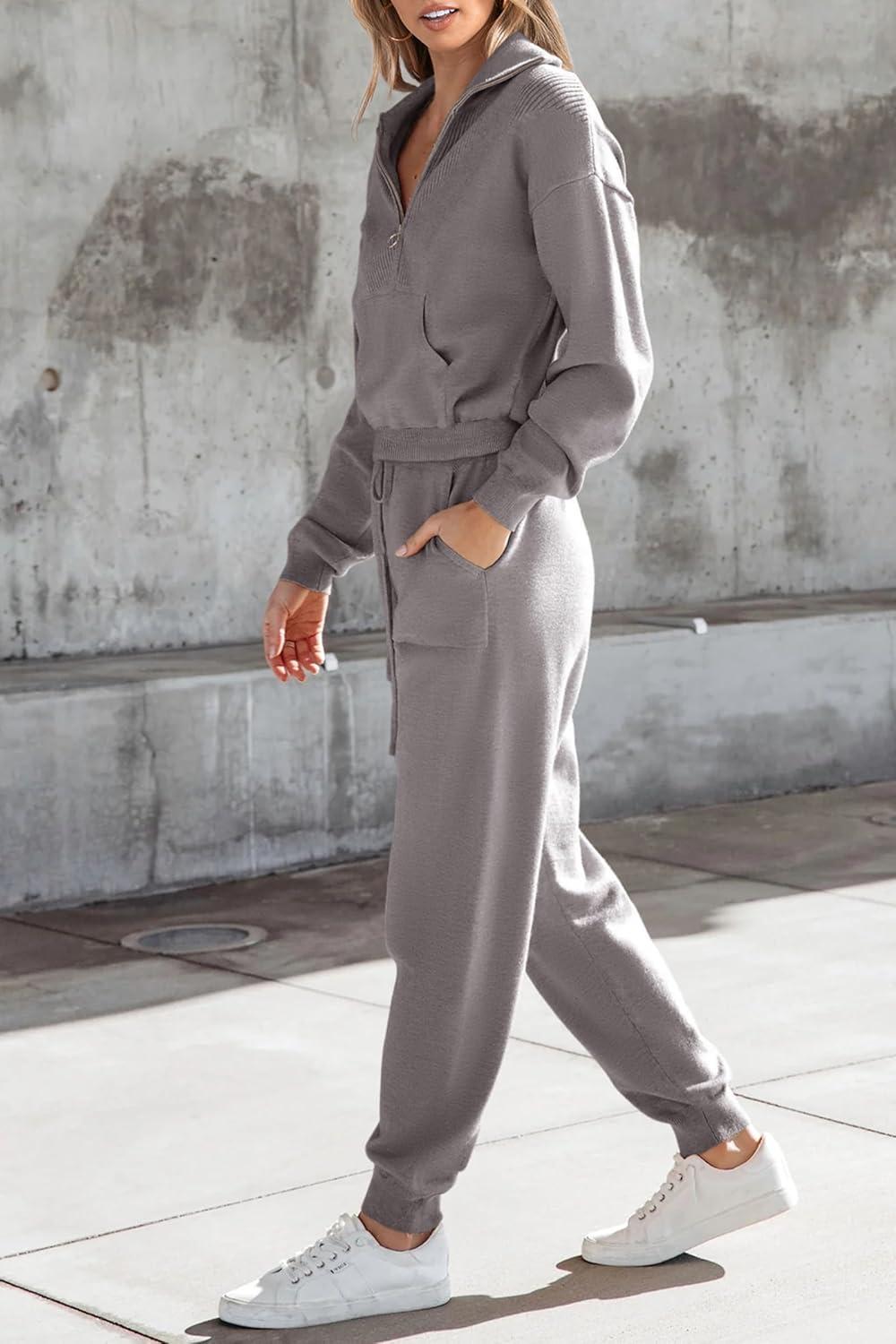 PRETTYGARDEN Women's 2 Piece Sweater Set Pullover Zip Up Sweatshirt Jogger Sweatpants Tracksuit Casual Outfit(Light Grey)