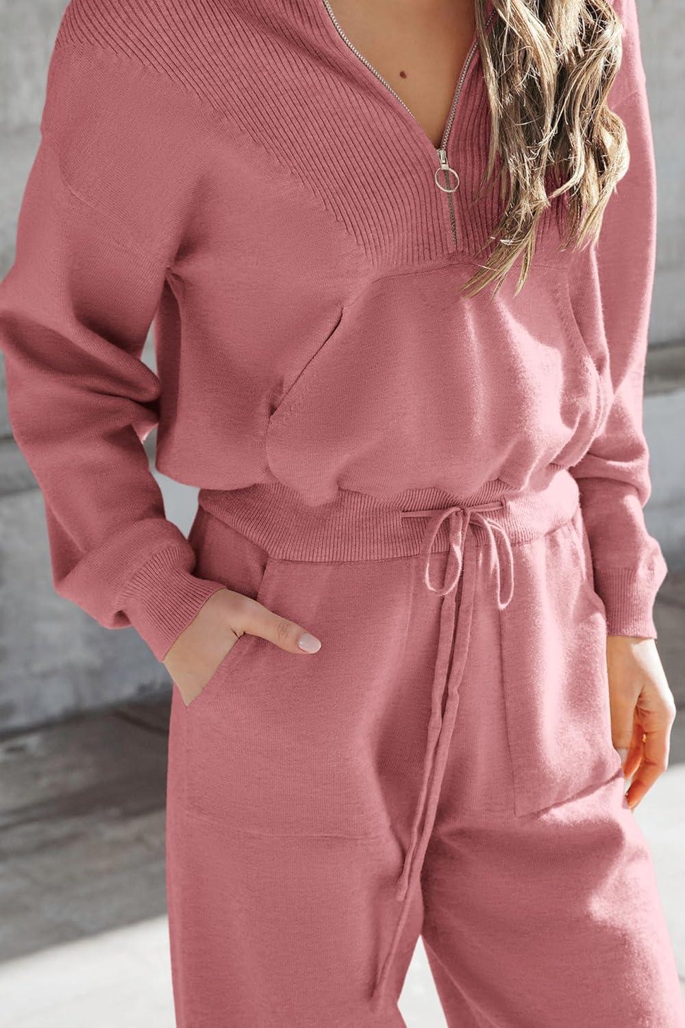 PRETTYGARDEN Women's 2 Piece Sweater Set Pullover Zip Up Sweatshirt Jogger Sweatpants Tracksuit Casual Outfit(Pink)