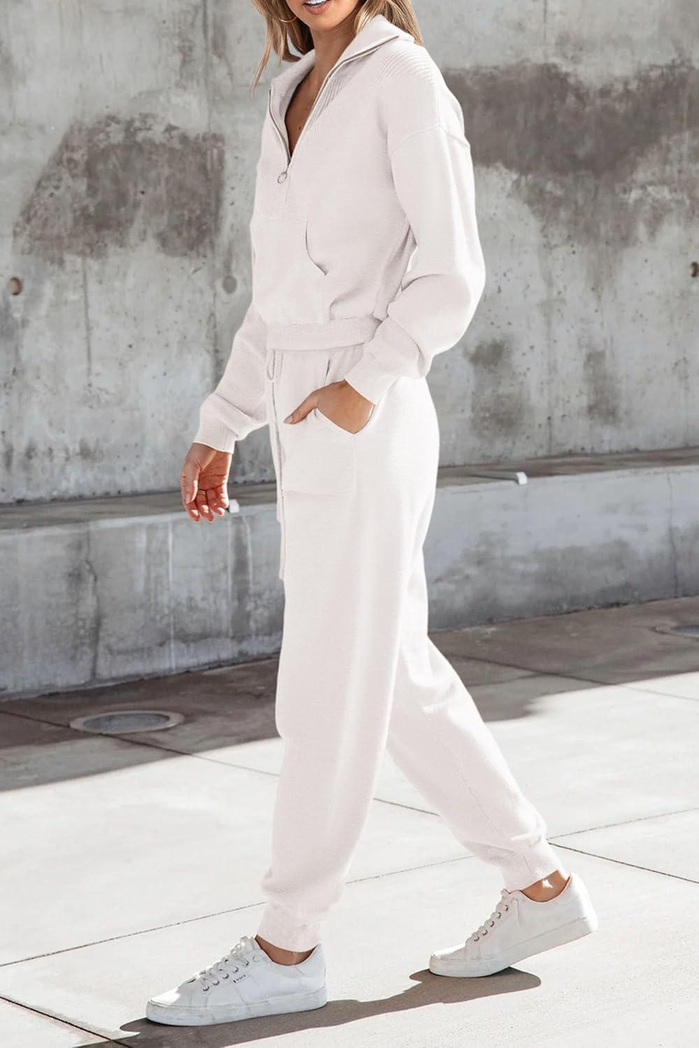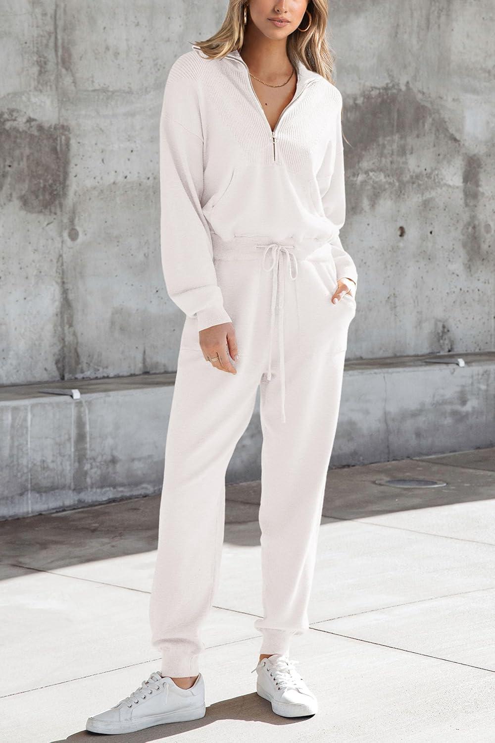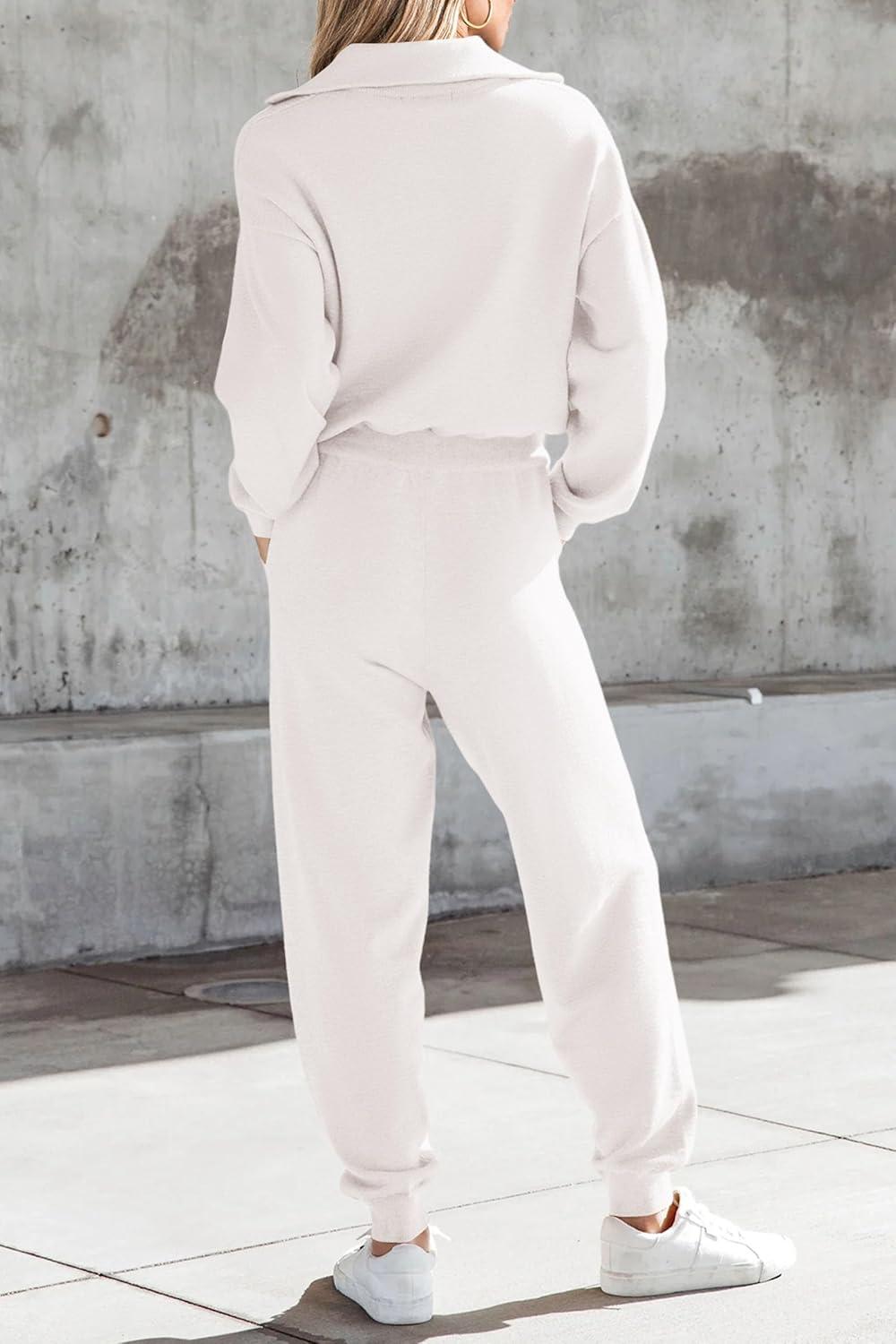 PRETTYGARDEN Women's 2 Piece Sweater Set Pullover Zip Up Sweatshirt Jogger Sweatpants Tracksuit Casual Outfit(White)