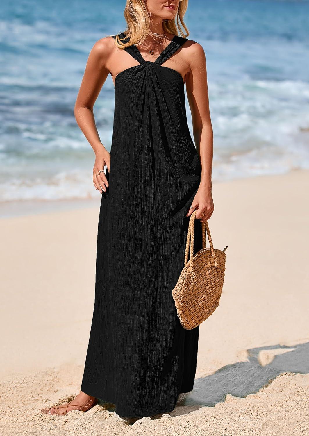 PRETTYGARDEN Womens 2025 Casual Long Summer Dresses Sleeveless Strappy Loose Flowy Beach Vacation Maxi Dress with Pockets(Black)