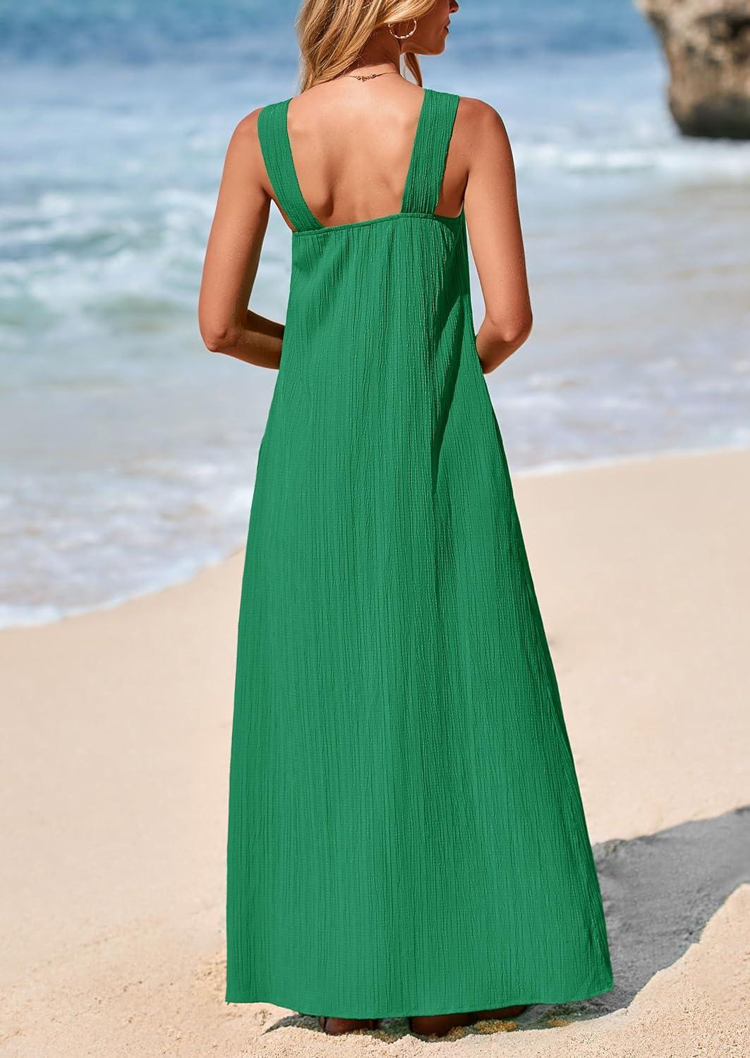 PRETTYGARDEN Womens 2025 Casual Long Summer Dresses Sleeveless Strappy Loose Flowy Beach Vacation Maxi Dress with Pockets(Dark Green)
