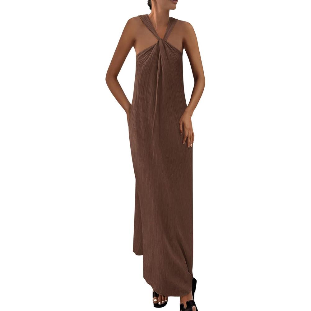 PRETTYGARDEN Womens 2025 Casual Long Summer Dresses Sleeveless Strappy Loose Flowy Beach Vacation Maxi Dress with Pockets(Dark Khaki)
