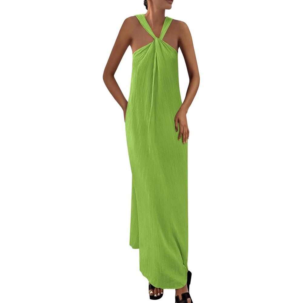 PRETTYGARDEN Womens 2025 Casual Long Summer Dresses Sleeveless Strappy Loose Flowy Beach Vacation Maxi Dress with Pockets(Green)