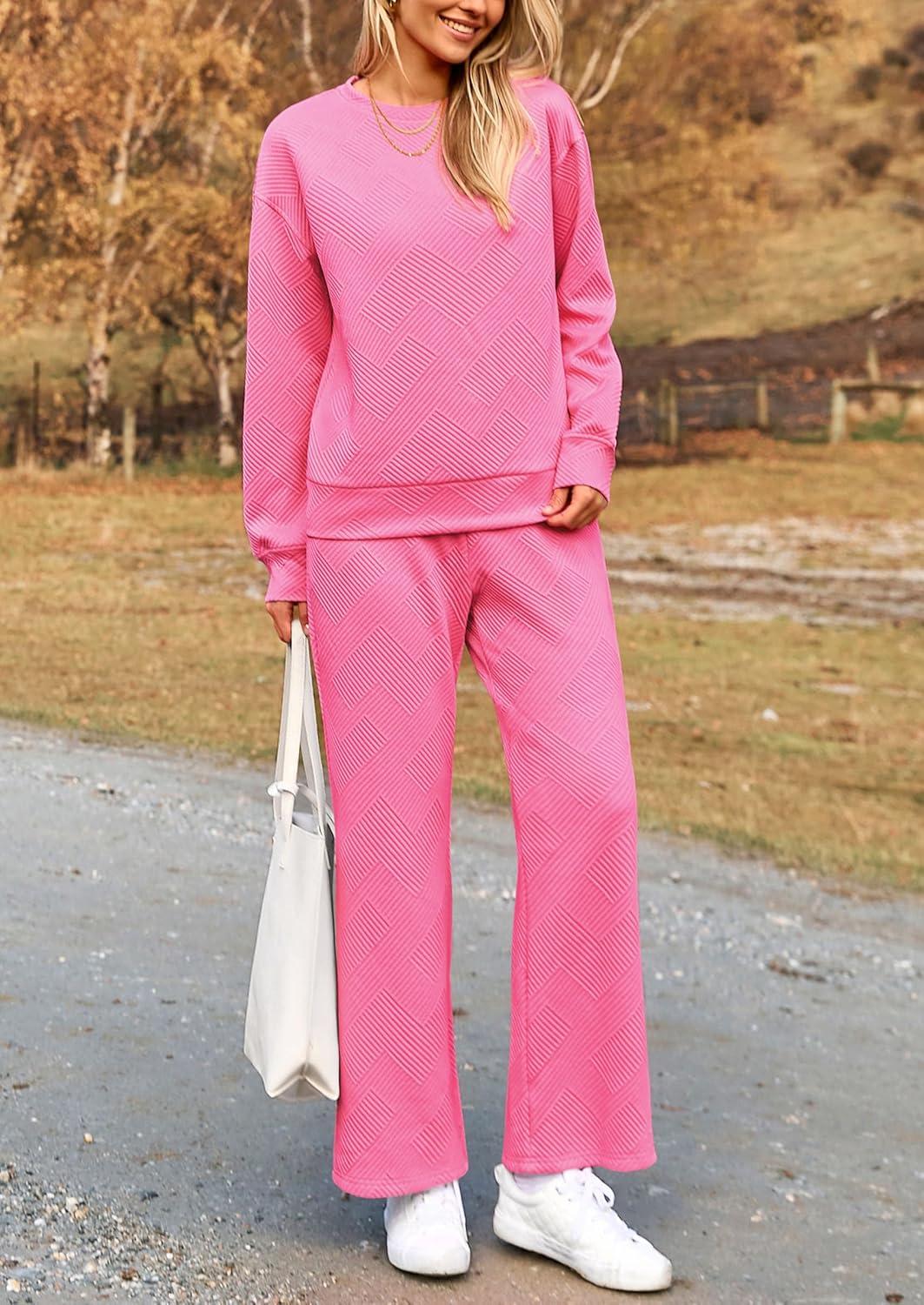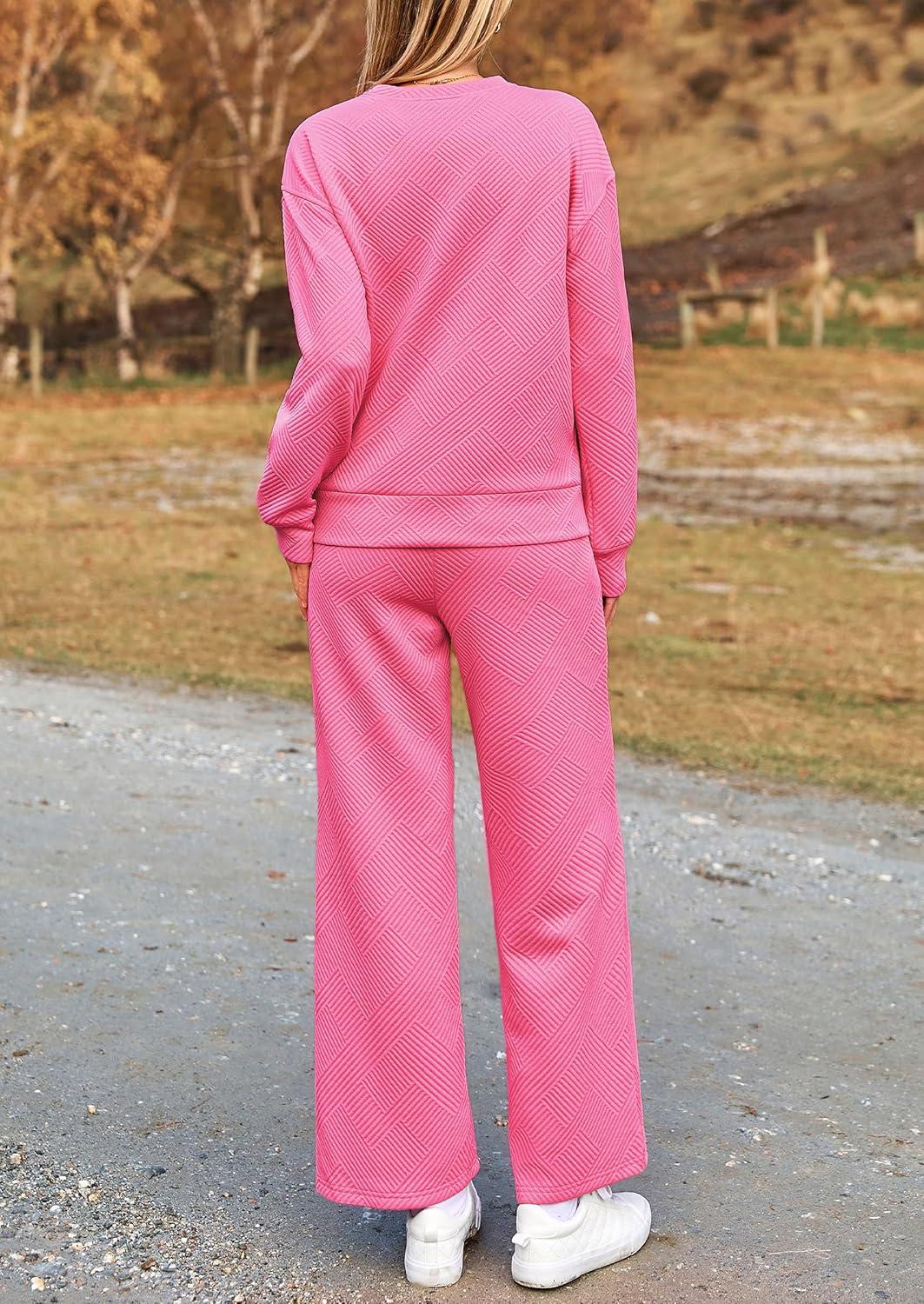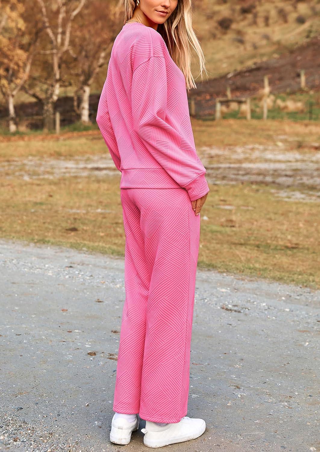 PRETTYGARDEN Womens 2025 Fall 2 Piece Outfits Long Sleeve Pullover Tops Wide Leg Pants Matching Lounge Sets Fashion Clothing(Pink)