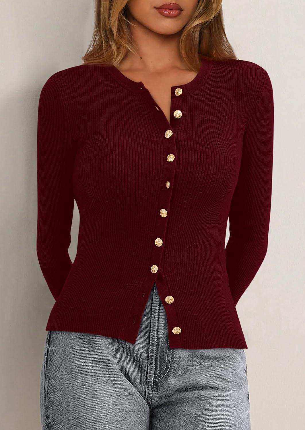 PRETTYGARDEN Womens 2025 Fall Cardigan Sweaters Lightweight Long Sleeve Button up Ribbed Knit Tops Winter Fashion Clothes(Burgundy)