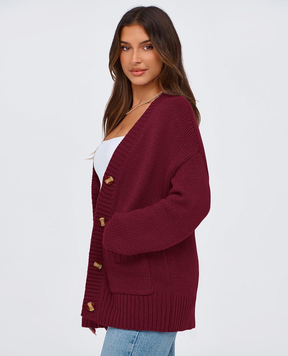 PRETTYGARDEN Women’s 2025 Fall Cardigan Sweaters Long Sleeve Open Front Button Up V Neck Knit Winter Fashion Clothes(Wine Red)