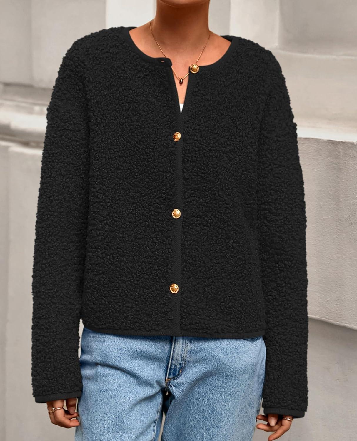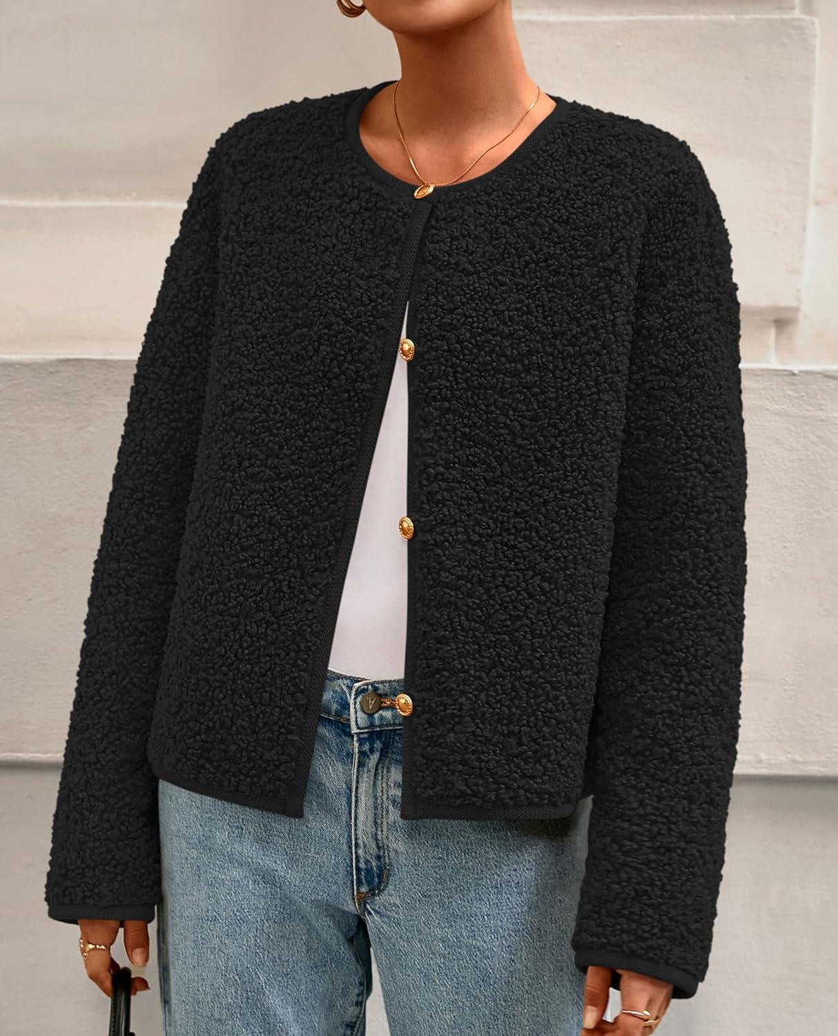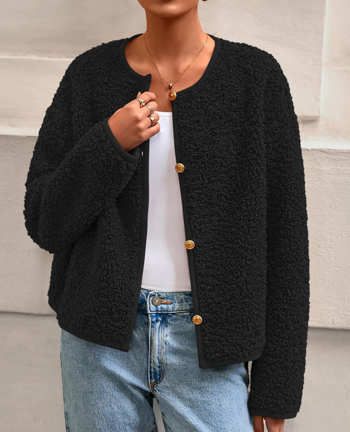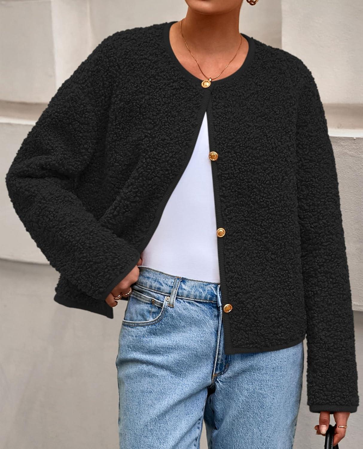 PRETTYGARDEN Women’s 2025 Fall Fashion Clothes Trendy Fleece Sherpa Cropped Jackets Buttons Warm Casual Winter Faux Fur Coats(Black)