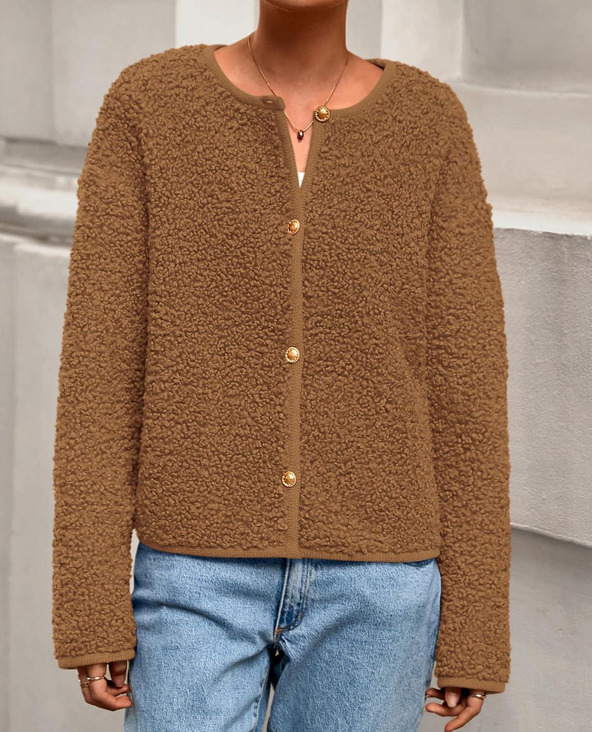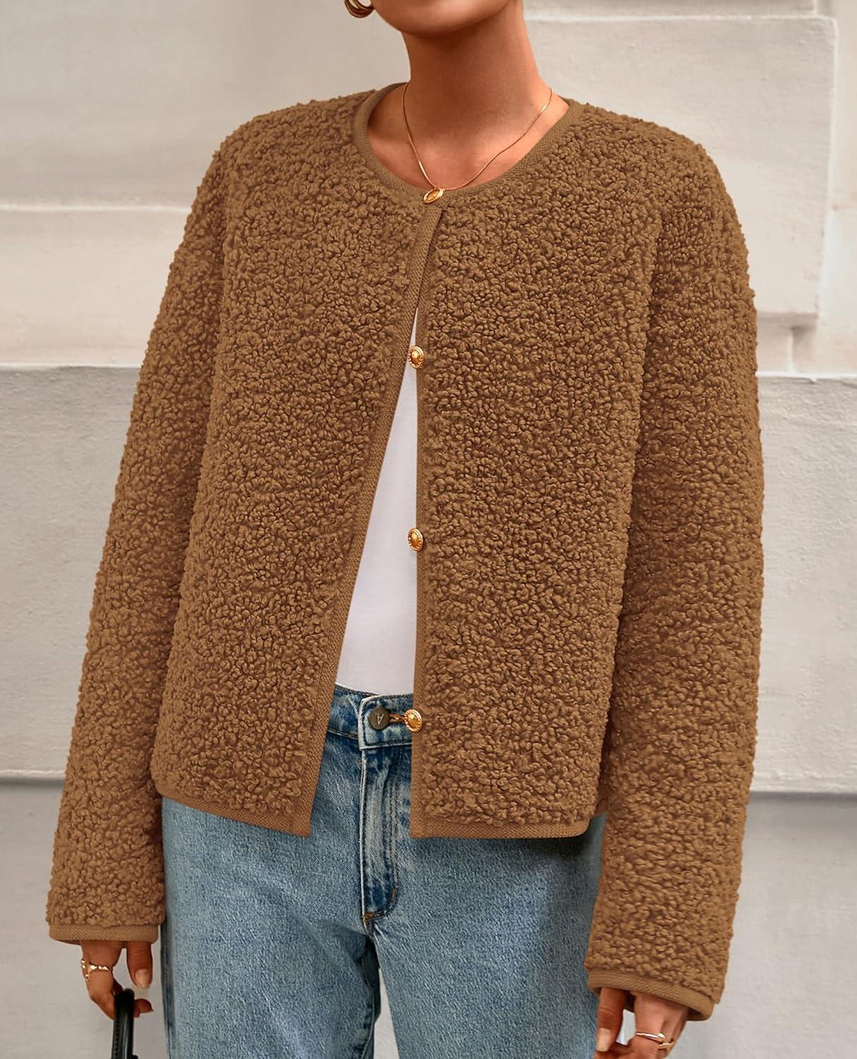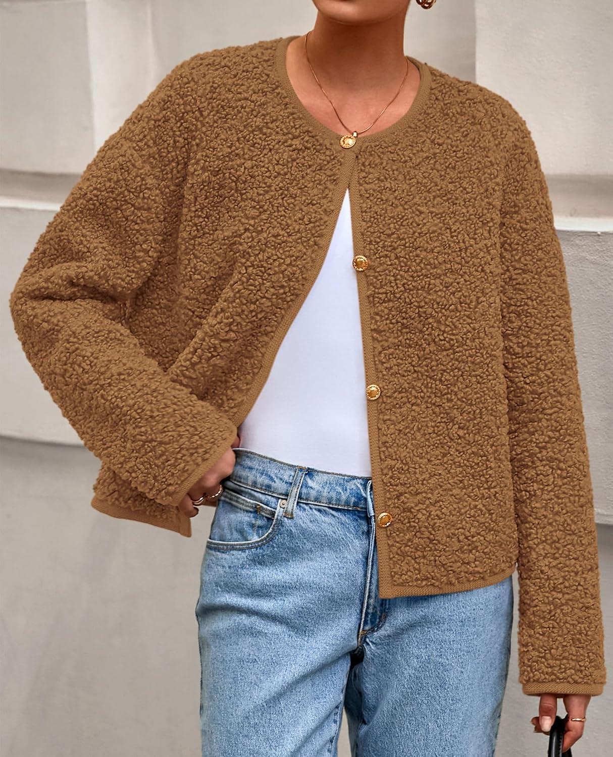 PRETTYGARDEN Women’s 2025 Fall Fashion Clothes Trendy Fleece Sherpa Cropped Jackets Buttons Warm Casual Winter Faux Fur Coats(Caramel)